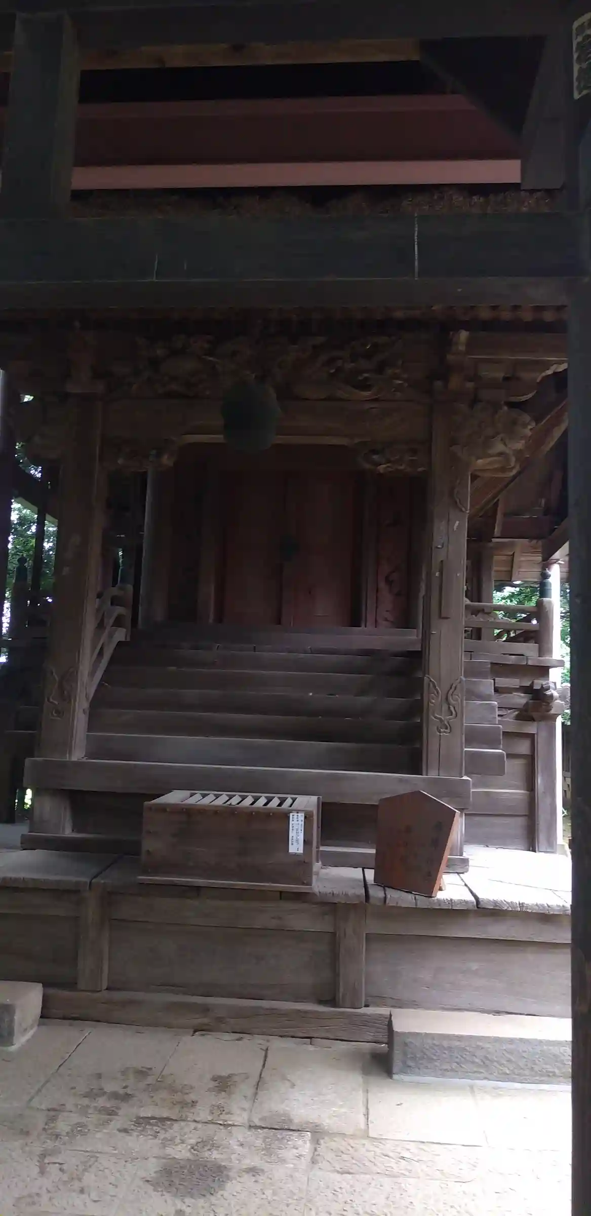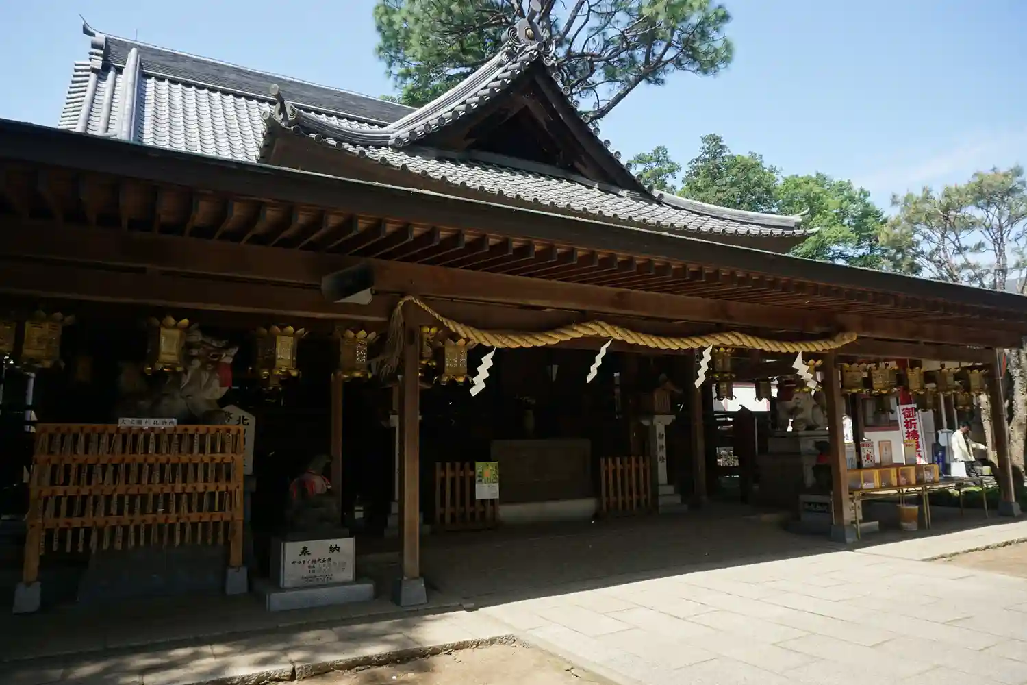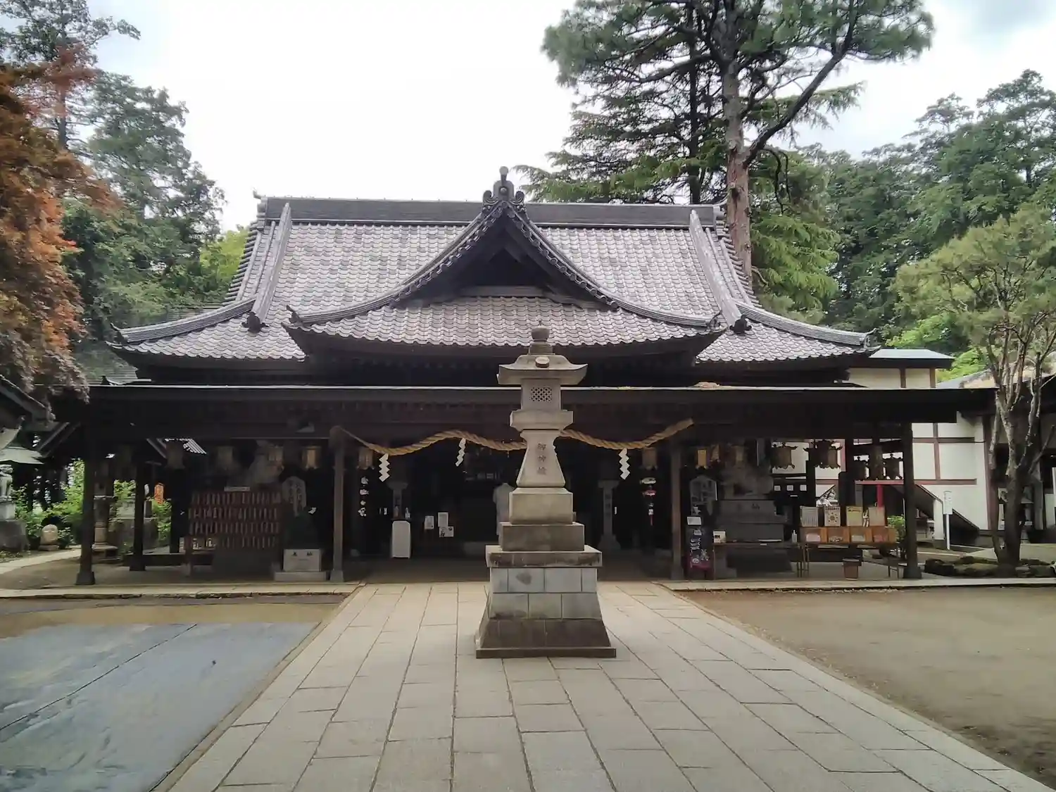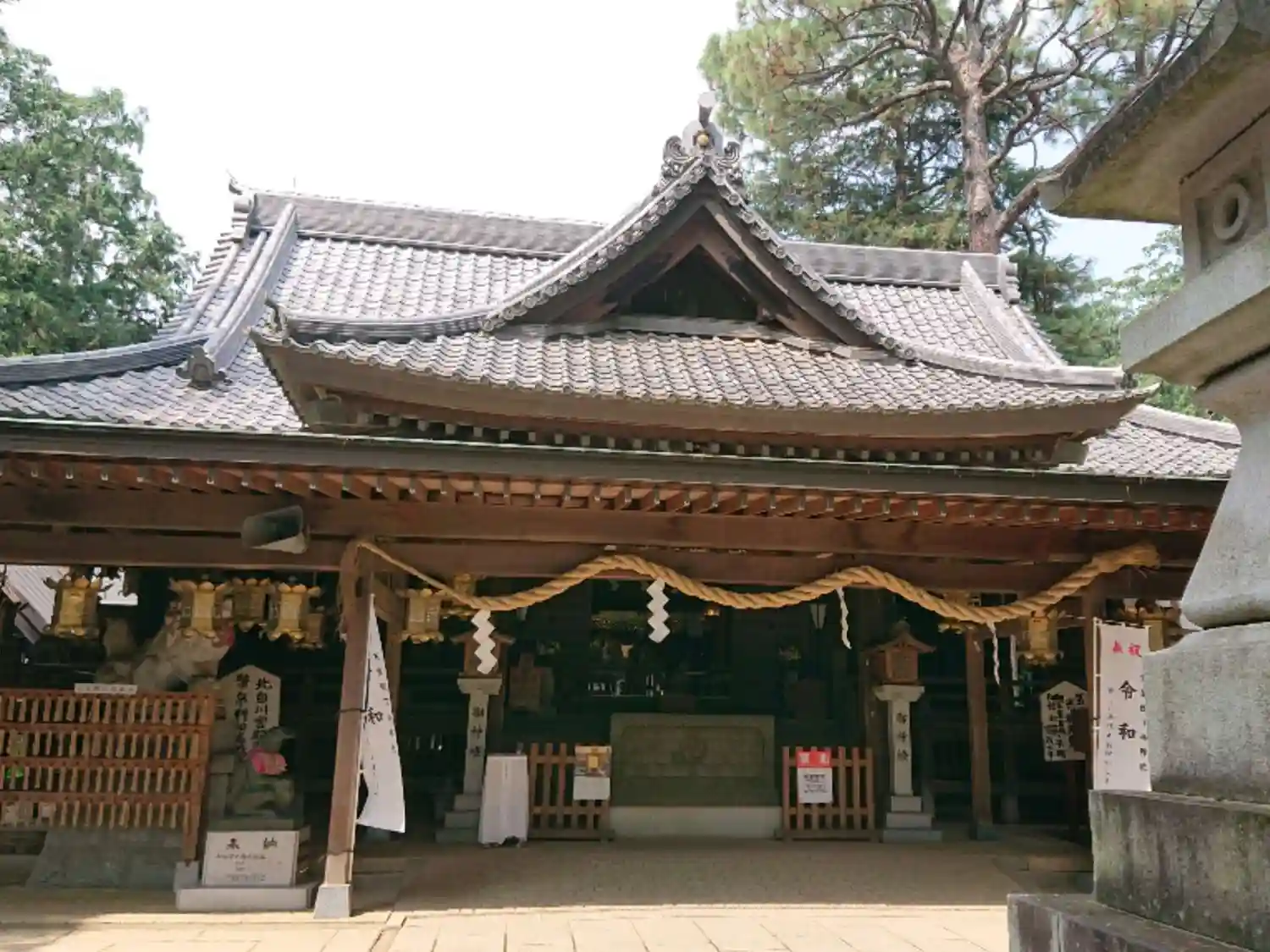 <拝殿>全景。珍しいことに、中央に1基だけ燈籠がある。有力な氏子さんが奉納したものかな?