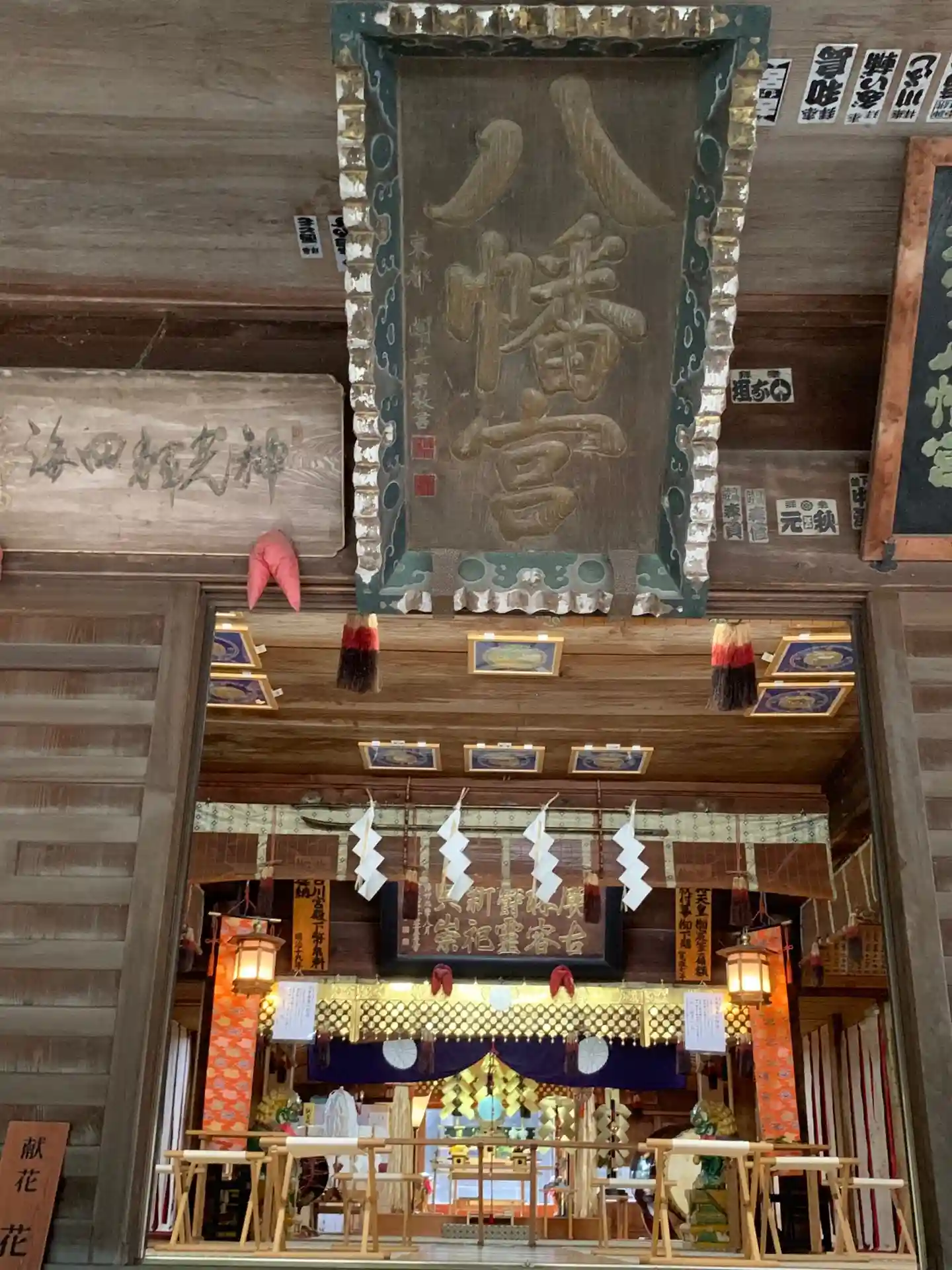 拝殿正面に掛かる、年季の入った<八幡宮>の扁額。