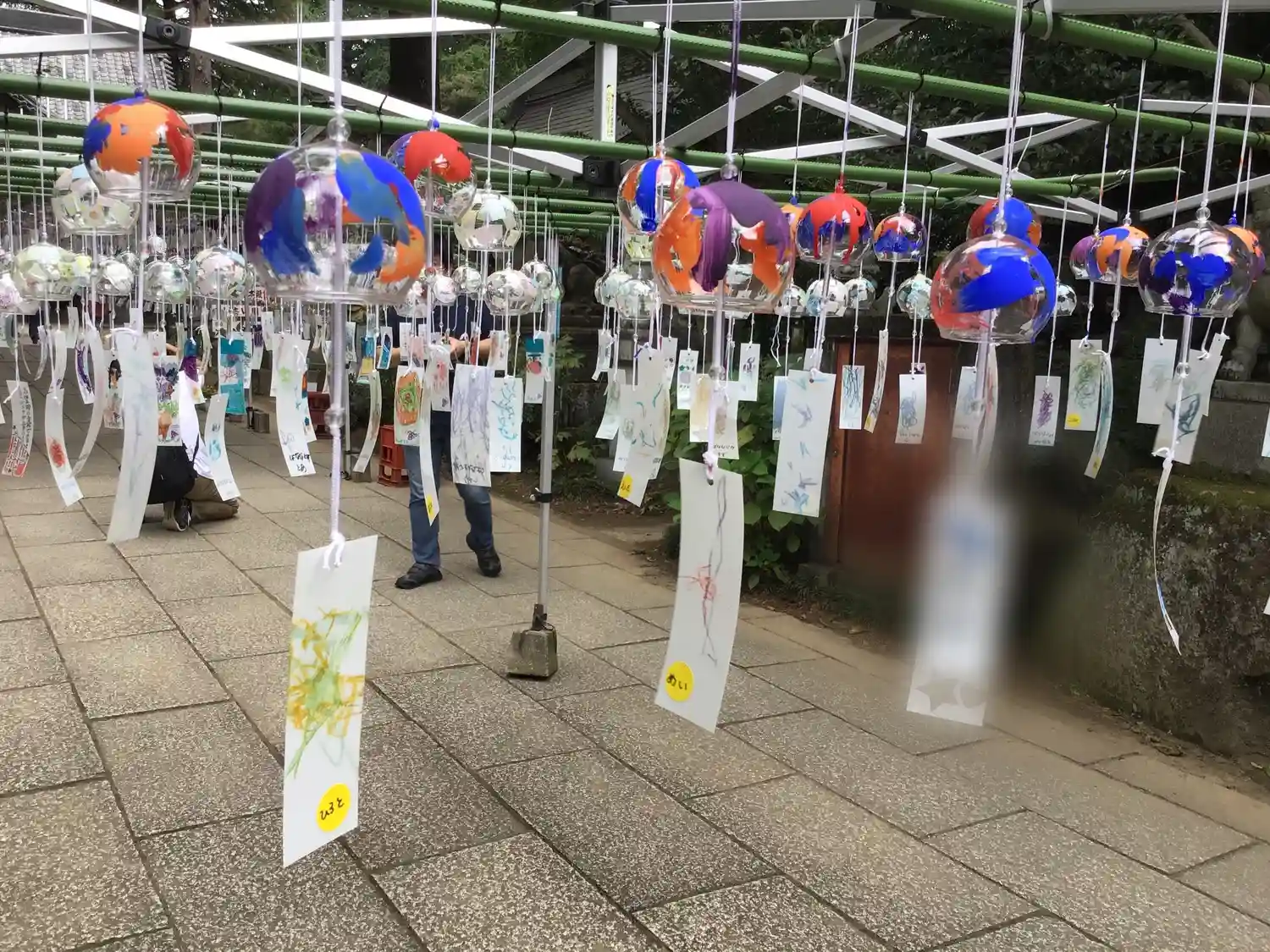 他の棚より少し低い棚はこども達の短冊が結ばれた風鈴が飾られていました。