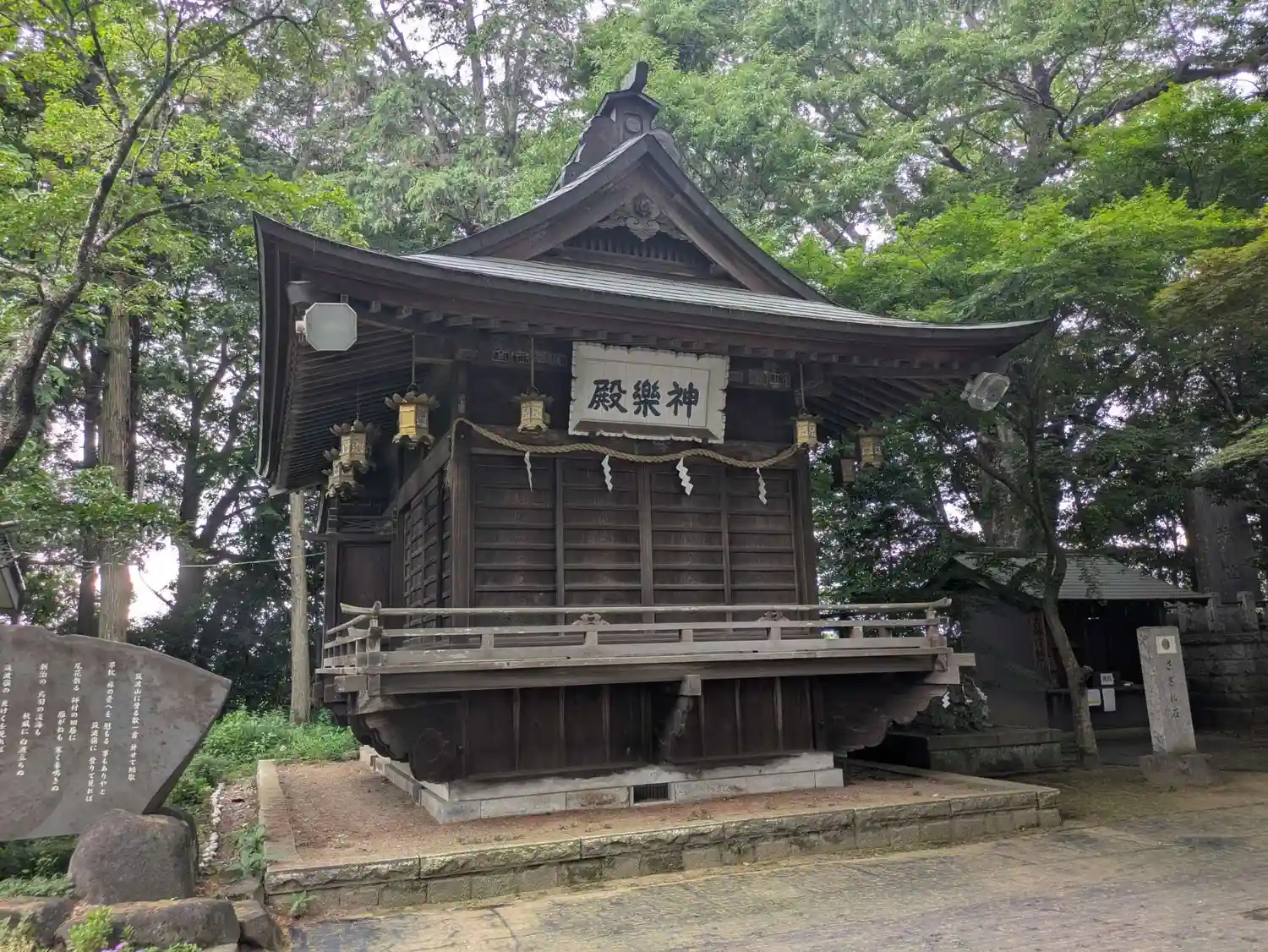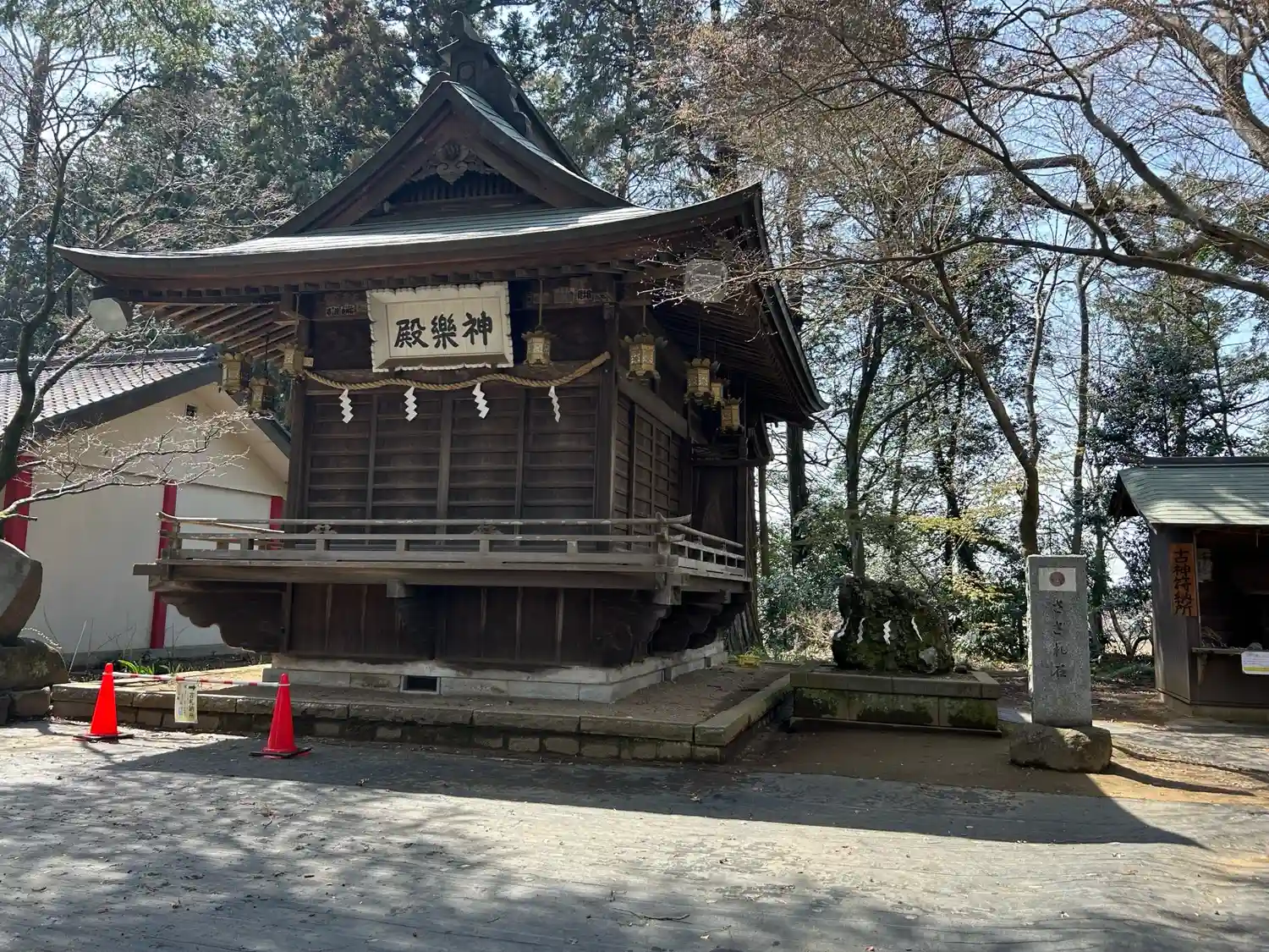 社殿の左側のエリアに移る。拝殿に向かって左手にある<神楽殿>。