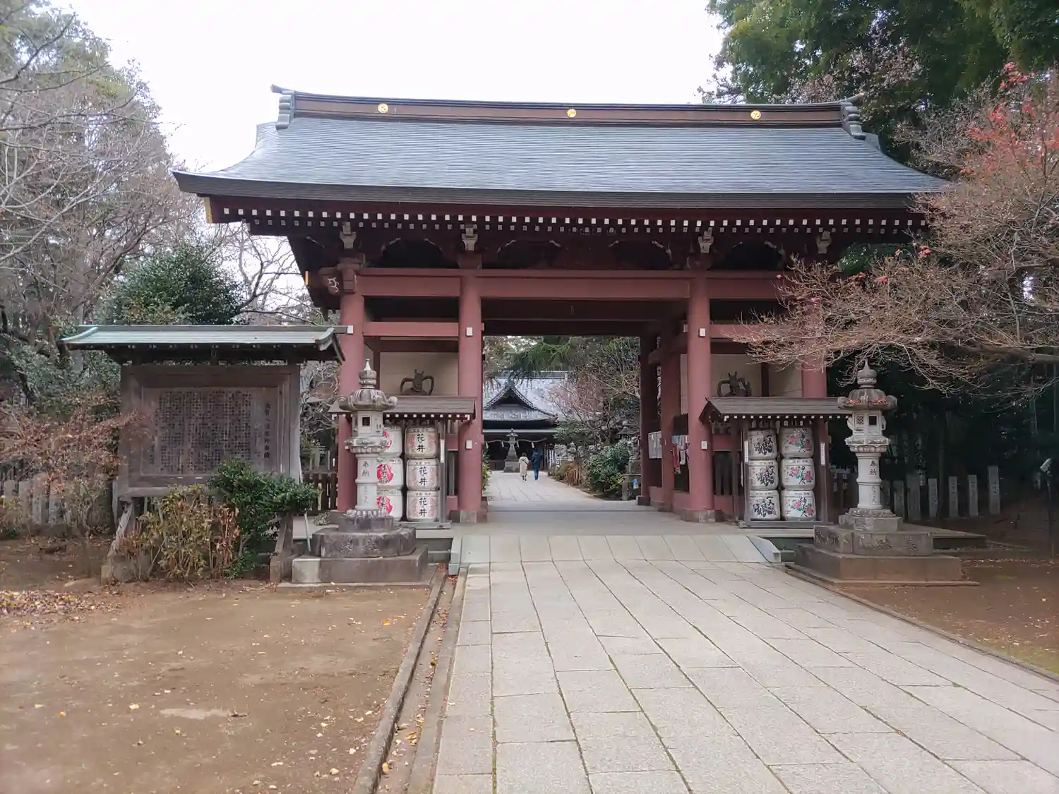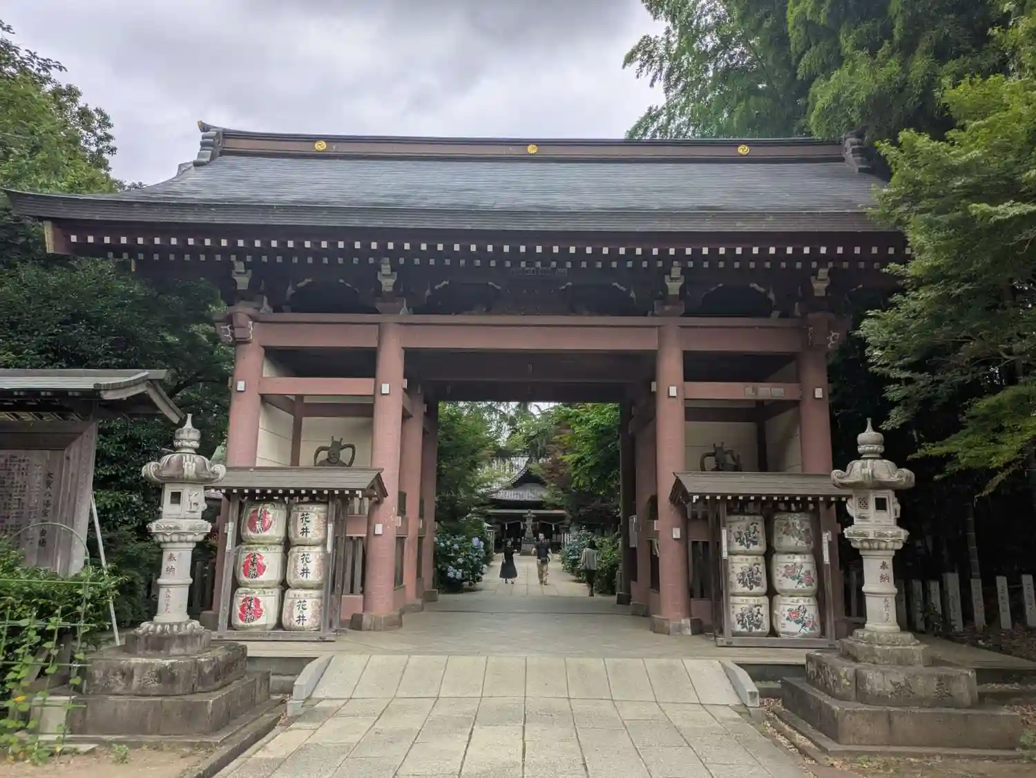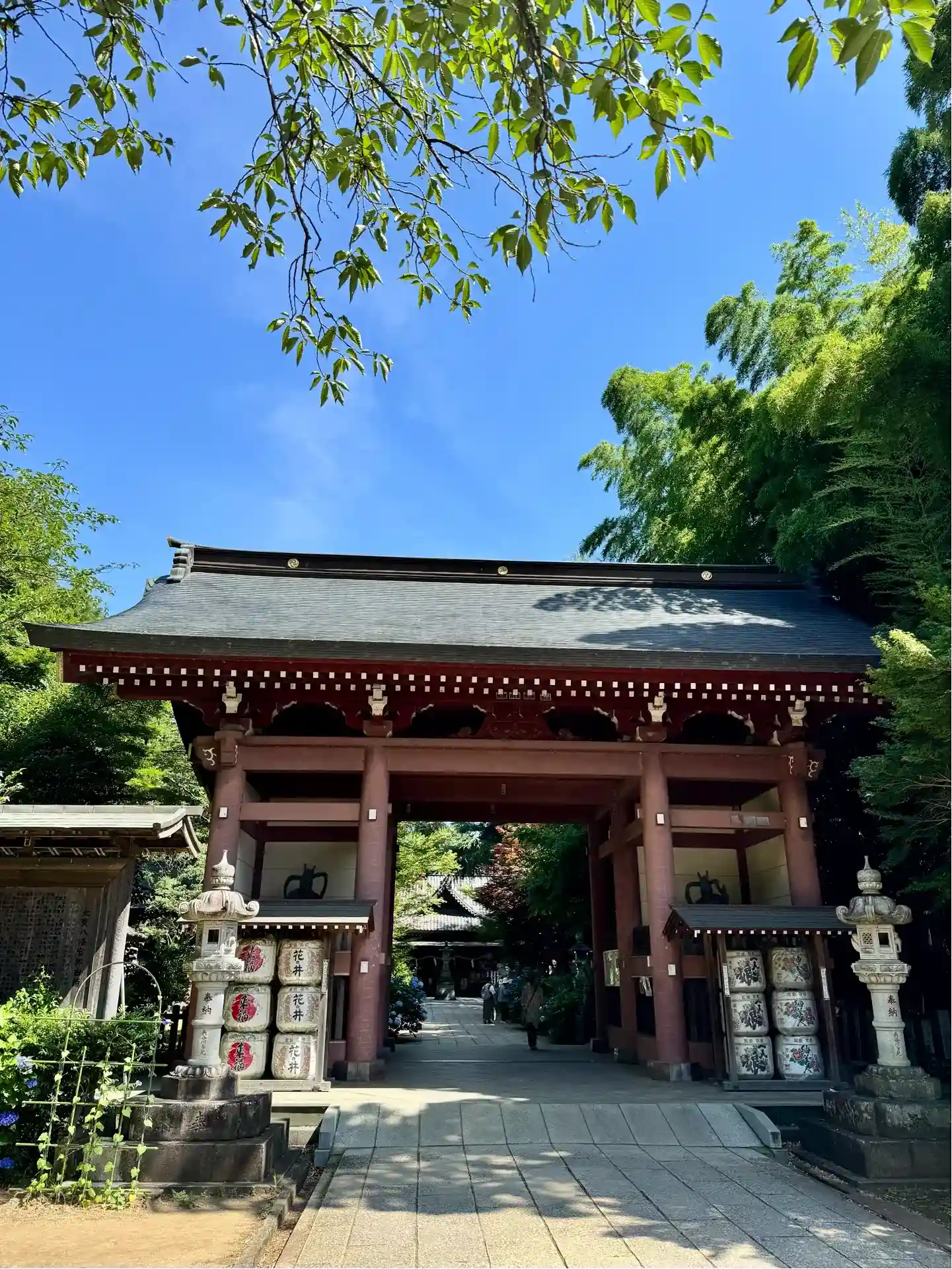 門を潜ると真っ直ぐな参道の両脇に石灯籠がならんでいます。
