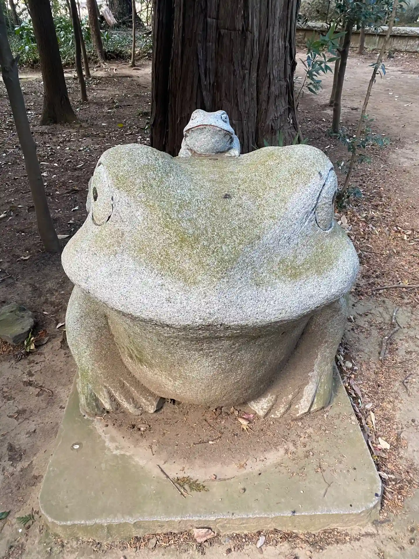 下妻政泰公の石碑付近に佇むカエル