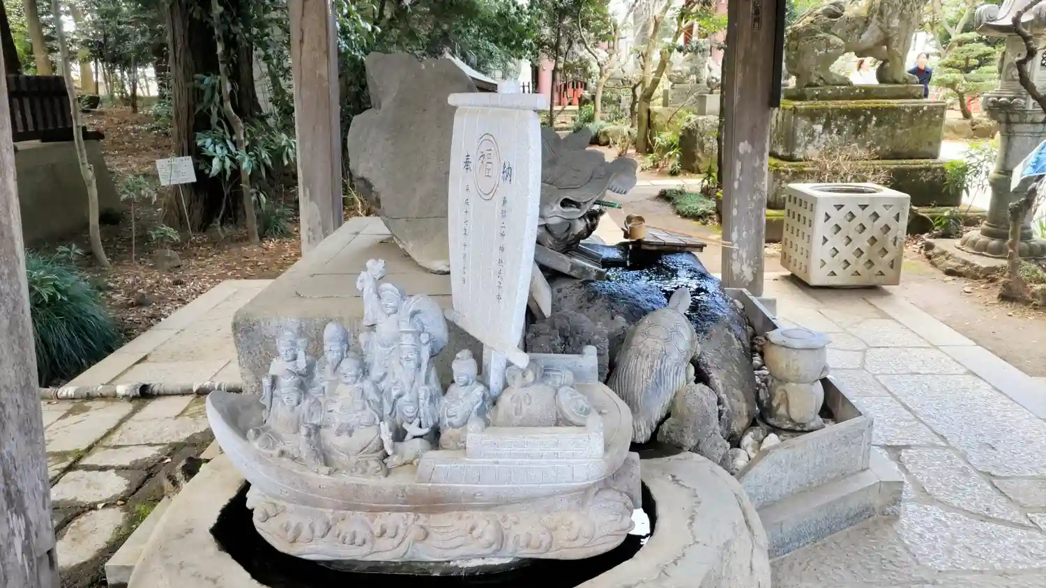 手水舎の横に七福神