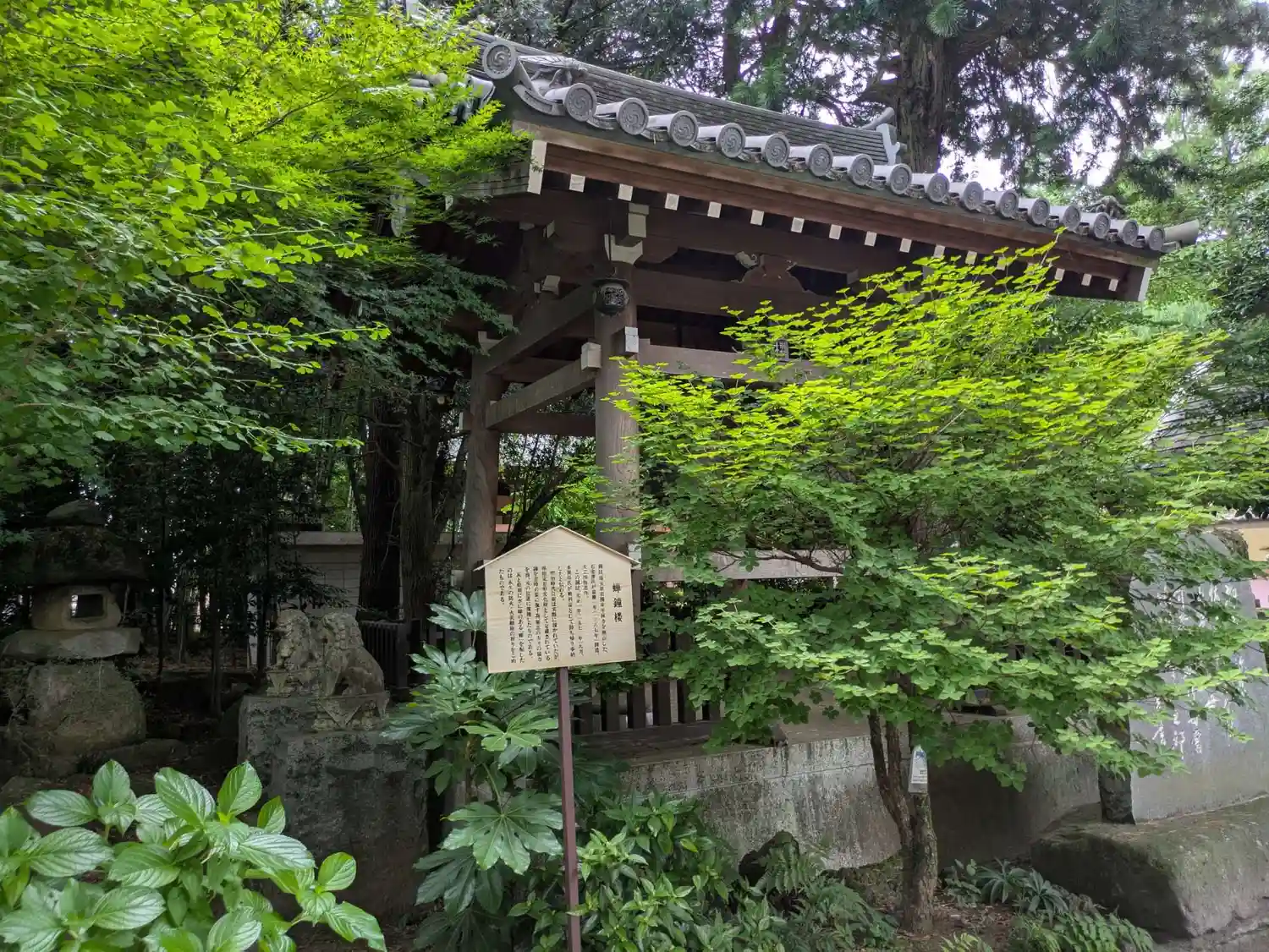 社務所の近く、境内東側にある<鐘楼>。神仏習合時代の名残りかな。表札には<蝉鐘楼>とある。梵鐘は室町時代の1387年に鋳造されたものを、戦国時代に多賀谷氏が戦利品として持ち帰り奉納したものとのこと。
