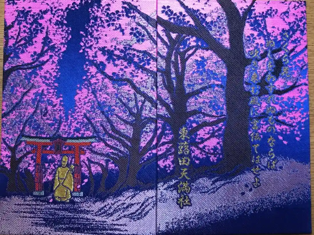 菅原道真公の和歌が書かれたカラフルな御朱印が18種類あります。末社の御朱印は7種類。季節限定の御朱印もあります。桜並木が描かれた御朱印帳と梅がモチーフの御朱印帳があります。 | |||