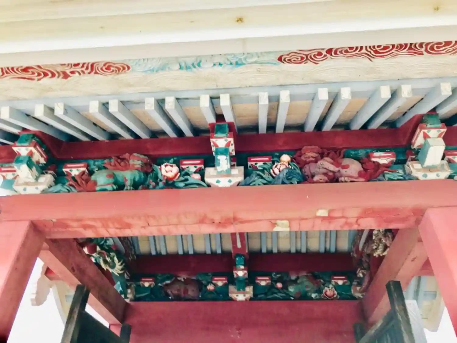 一本の木の柱に龍の彫り物🐉