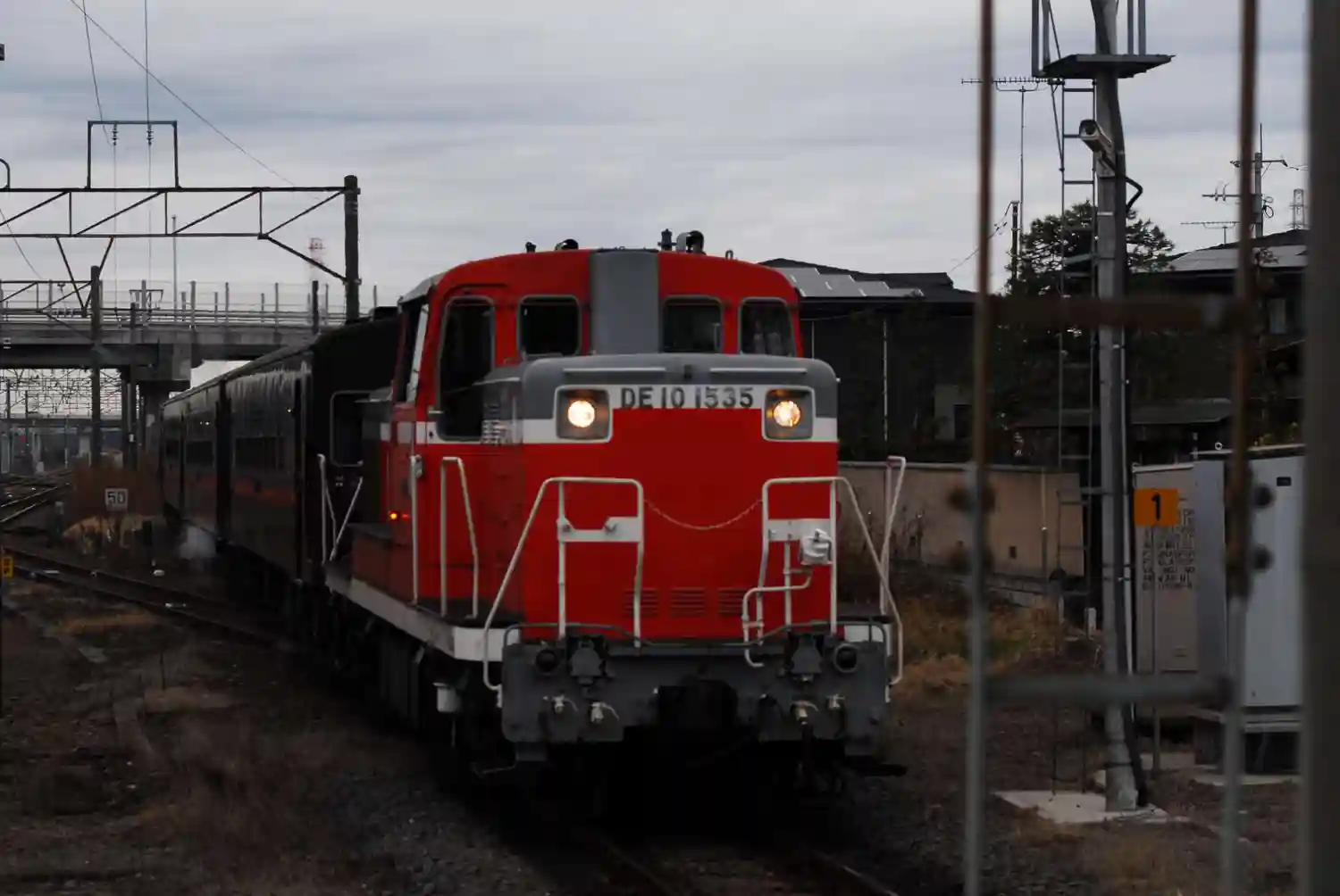 下館駅午前9時57分 DE10型ディーゼル車にけん引され蒸気機関車が退避線路に入線。D200