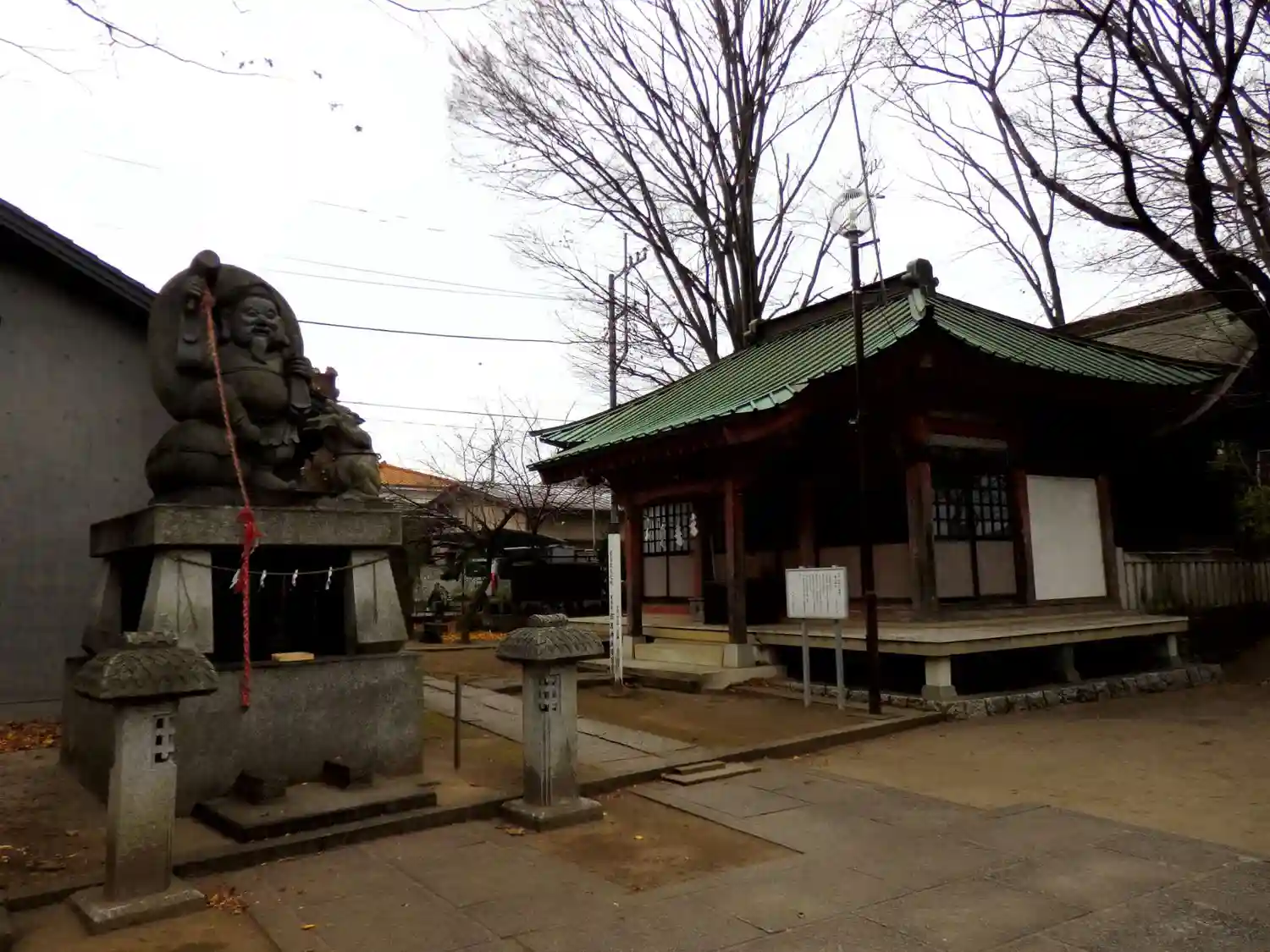 近くに宮司さん宅兼社務所が神社の左側