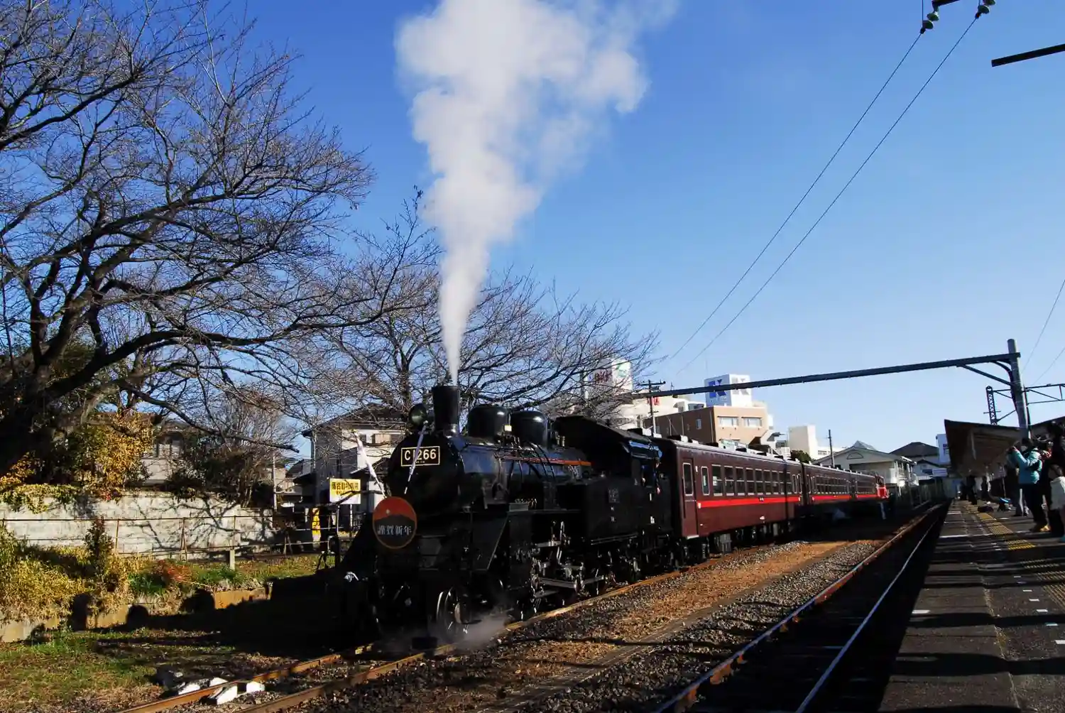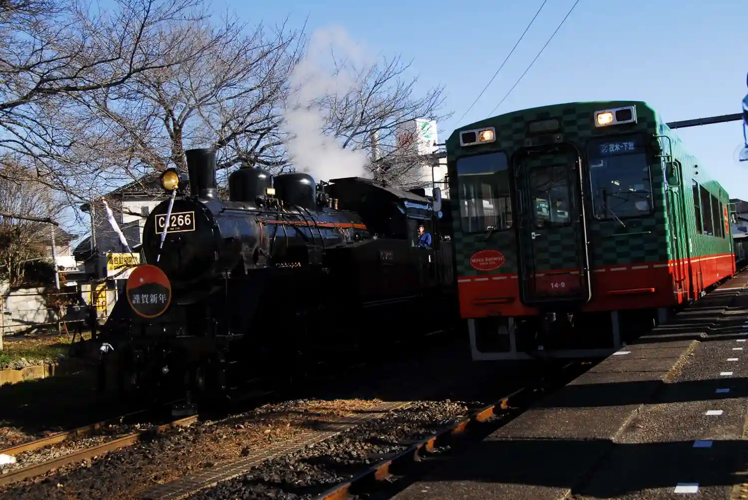 参拝を終え下館駅にて真岡鐵道SL新年号を撮影。オリンパスE500