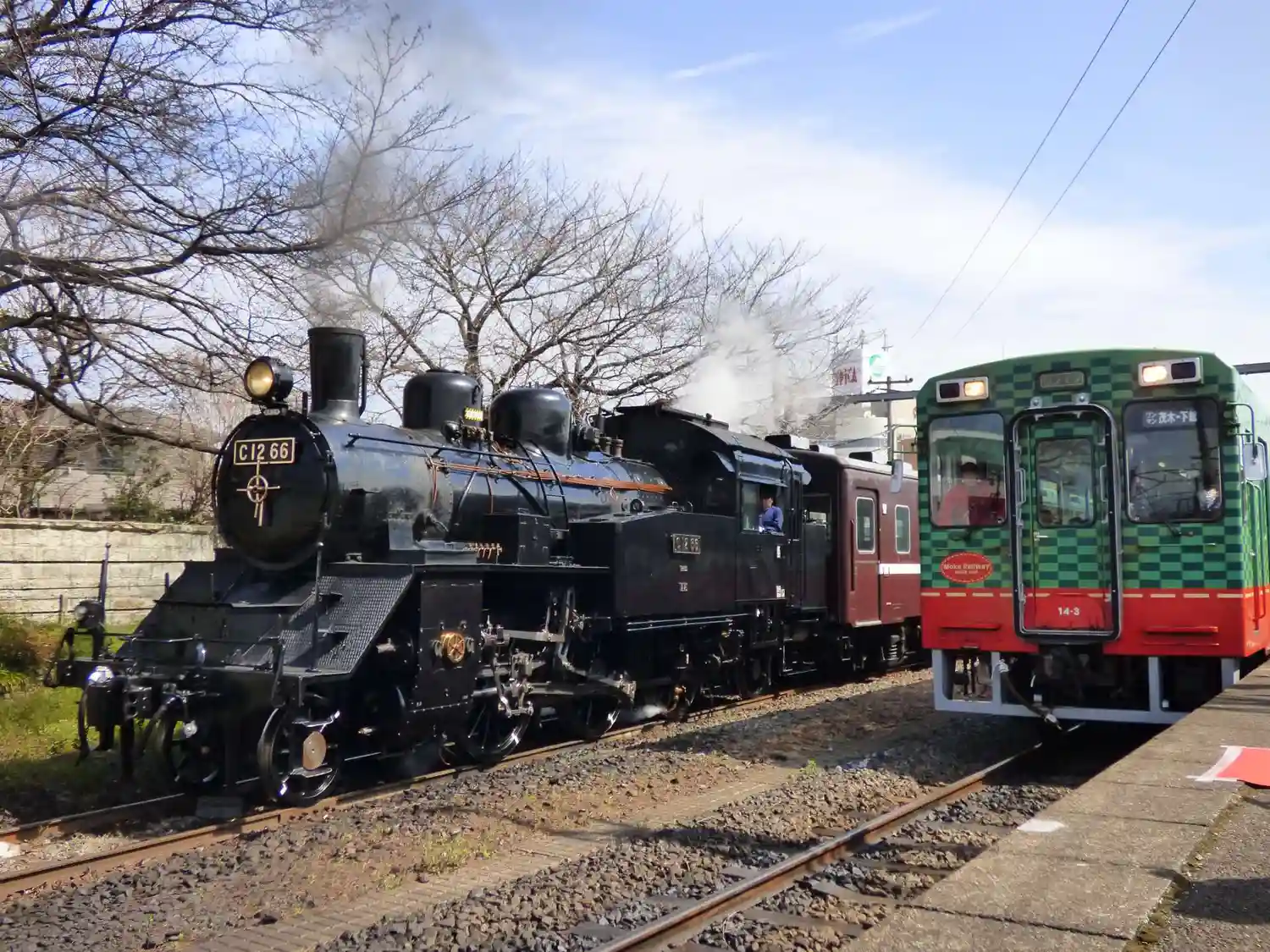 今回は下館駅に車を置き、下り機関車で真岡駅下車、上り普通列車で下館駅着。真岡駅周辺には食事処があり上り列車の時間調整には容易です。