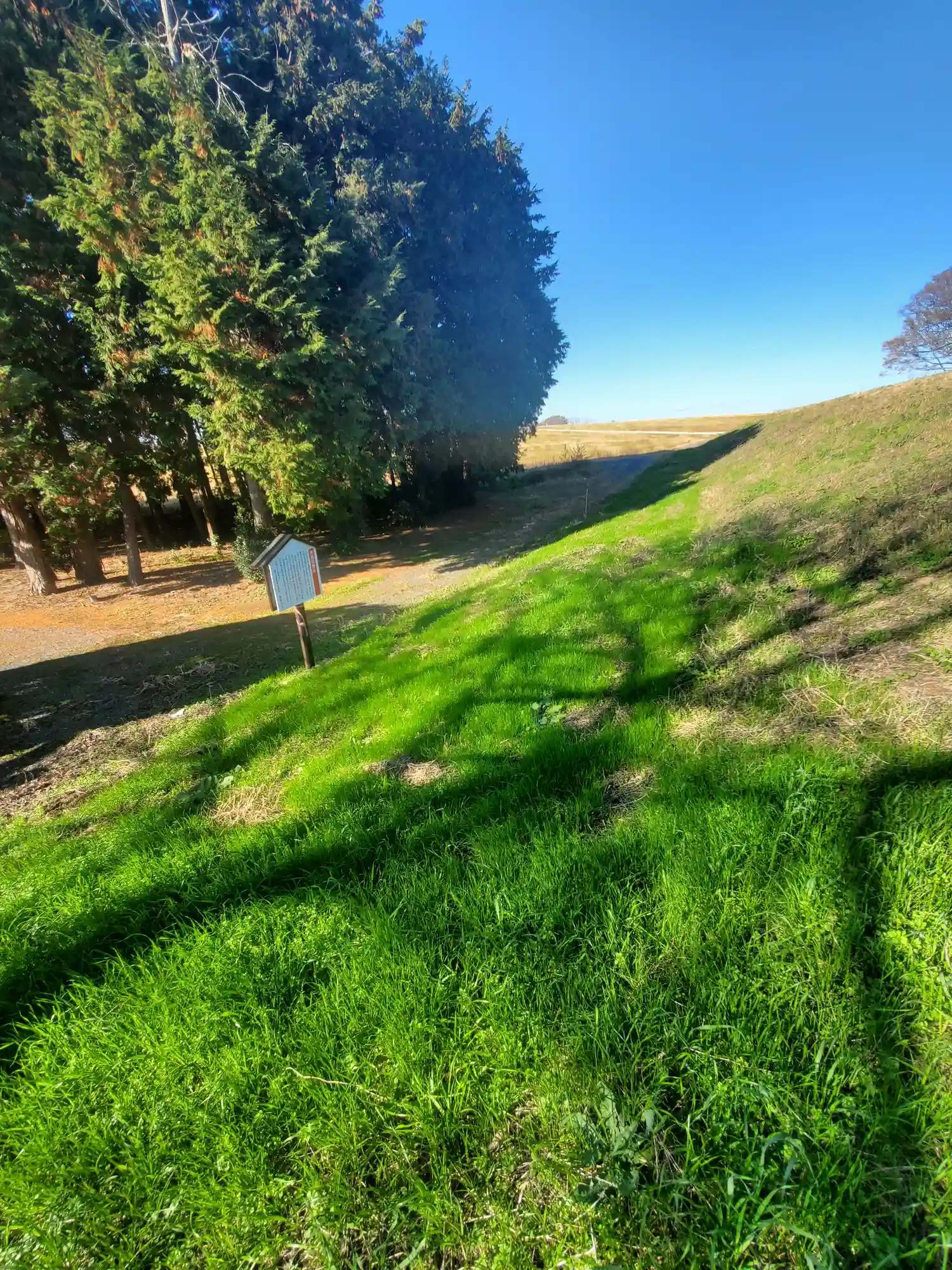 一旦土手を上がります
