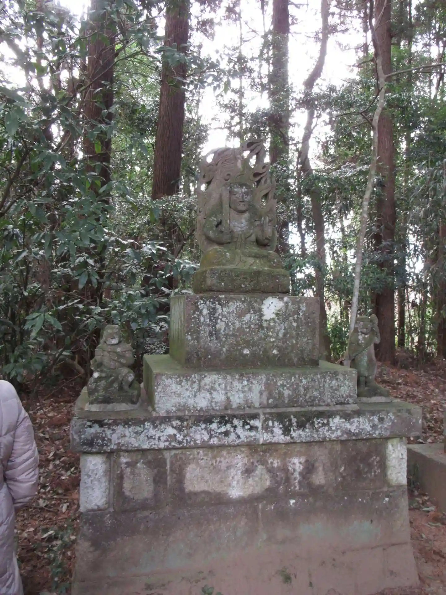 多くの方は、鴻野山豊岡線134号でもコンビニ近くの参道からお寺さんの駐車場へ行かれてしまうのでしょうが、わたくしのお勧めは、ダイトー茨城工場先まで進んで、そこにある駐車場にクルマを停め、徒歩で森の参道でアクセスしてほしい。