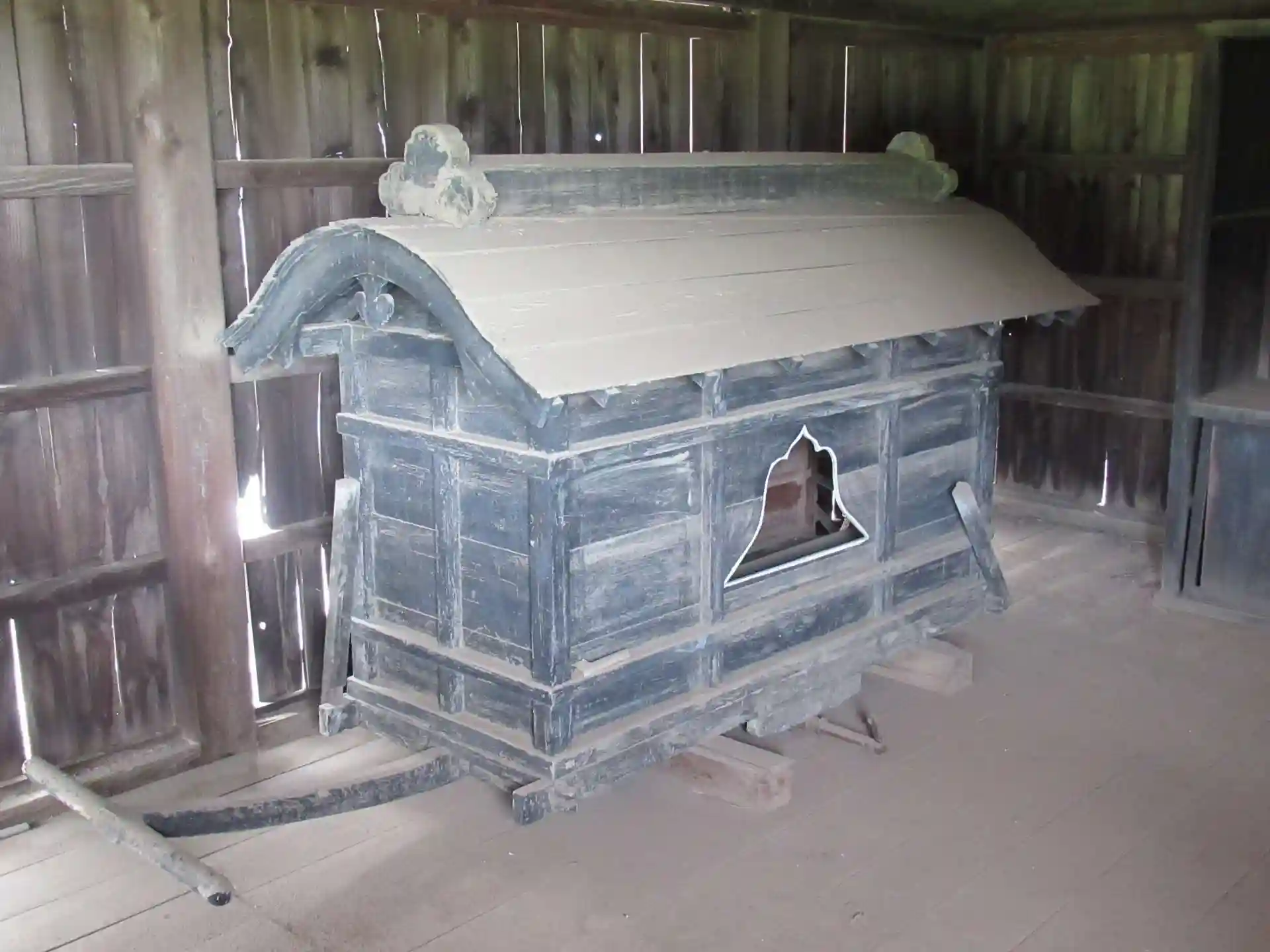 その隣には、何と、ヒトが引いて亡くなった方を運ぶための、霊柩車