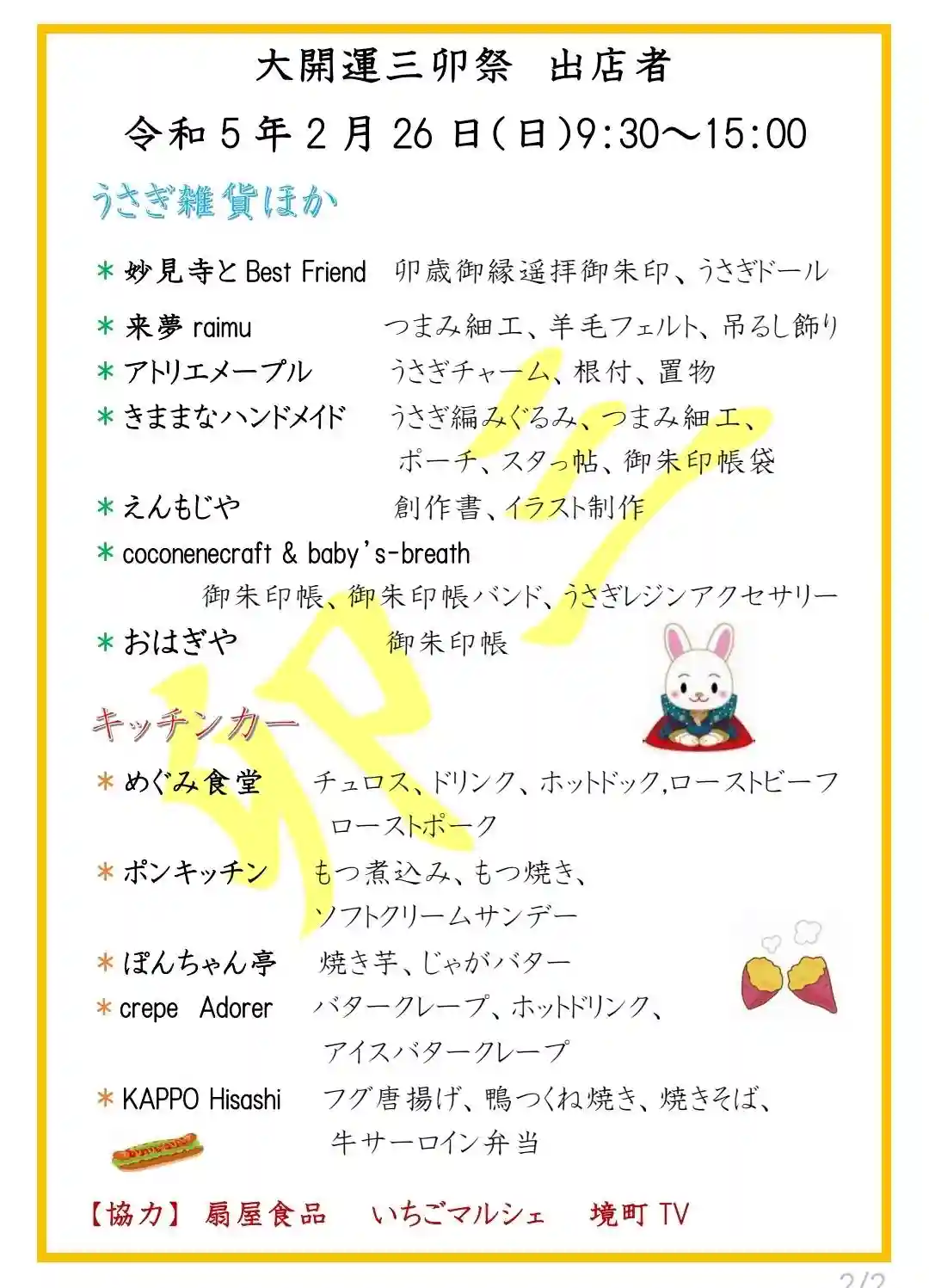 9:30~15:00 うさぎ雑貨販売 キッチンカー出店