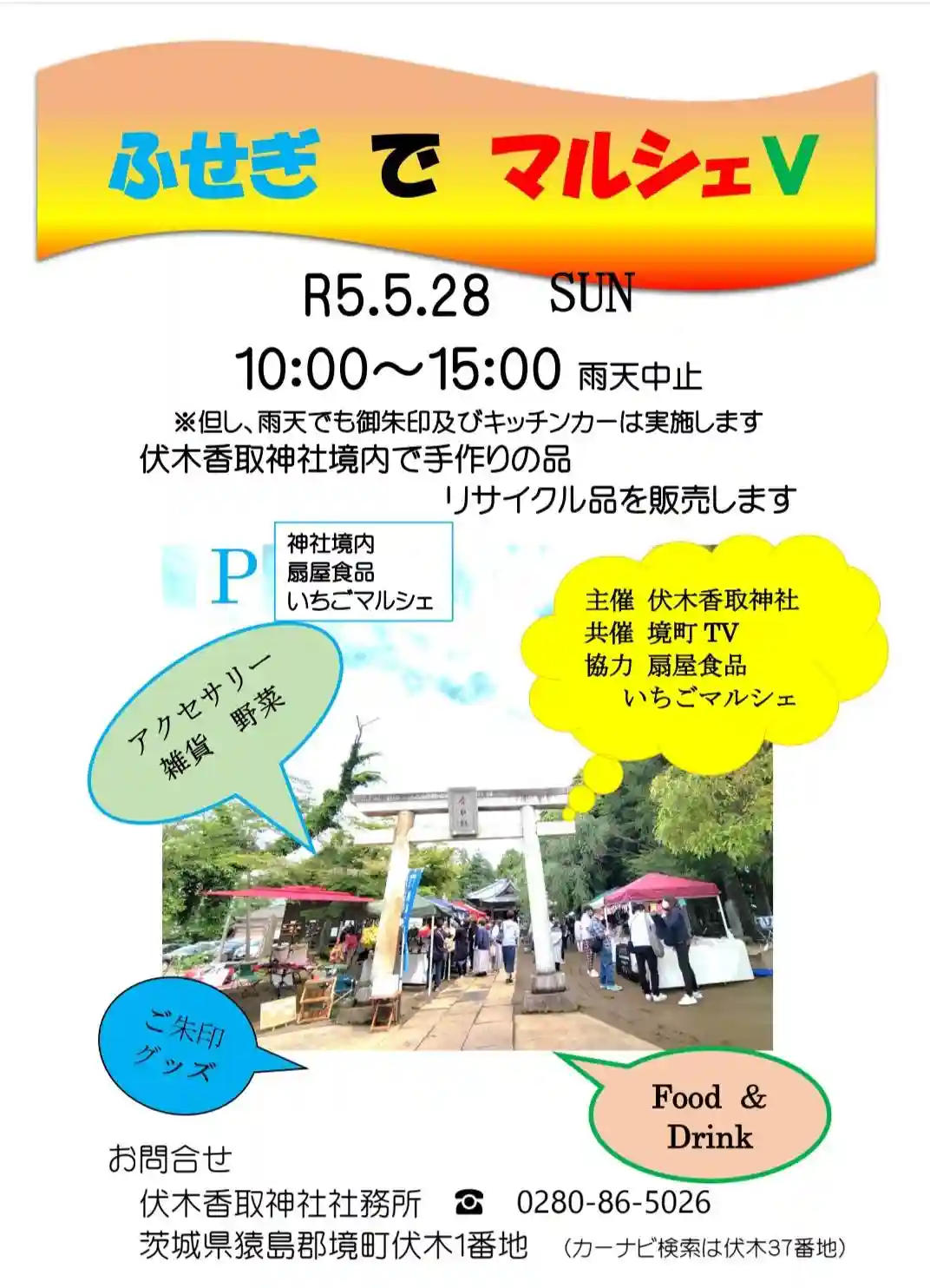 5/28(日)に開催の「ふせぎ で マルシェⅤ」まで2週間となりました。