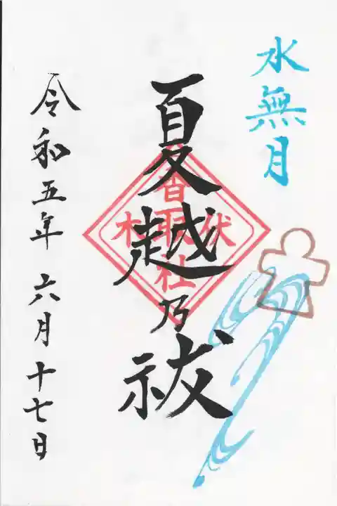 綺麗な添え印のある御朱印があることは以前お詣りしたときに存じていましたが、一粒万倍日の御朱印もあるようで迷ってしまいましたが、大祓の御朱印を頂き、人形代、茅の輪守りを頂きました。