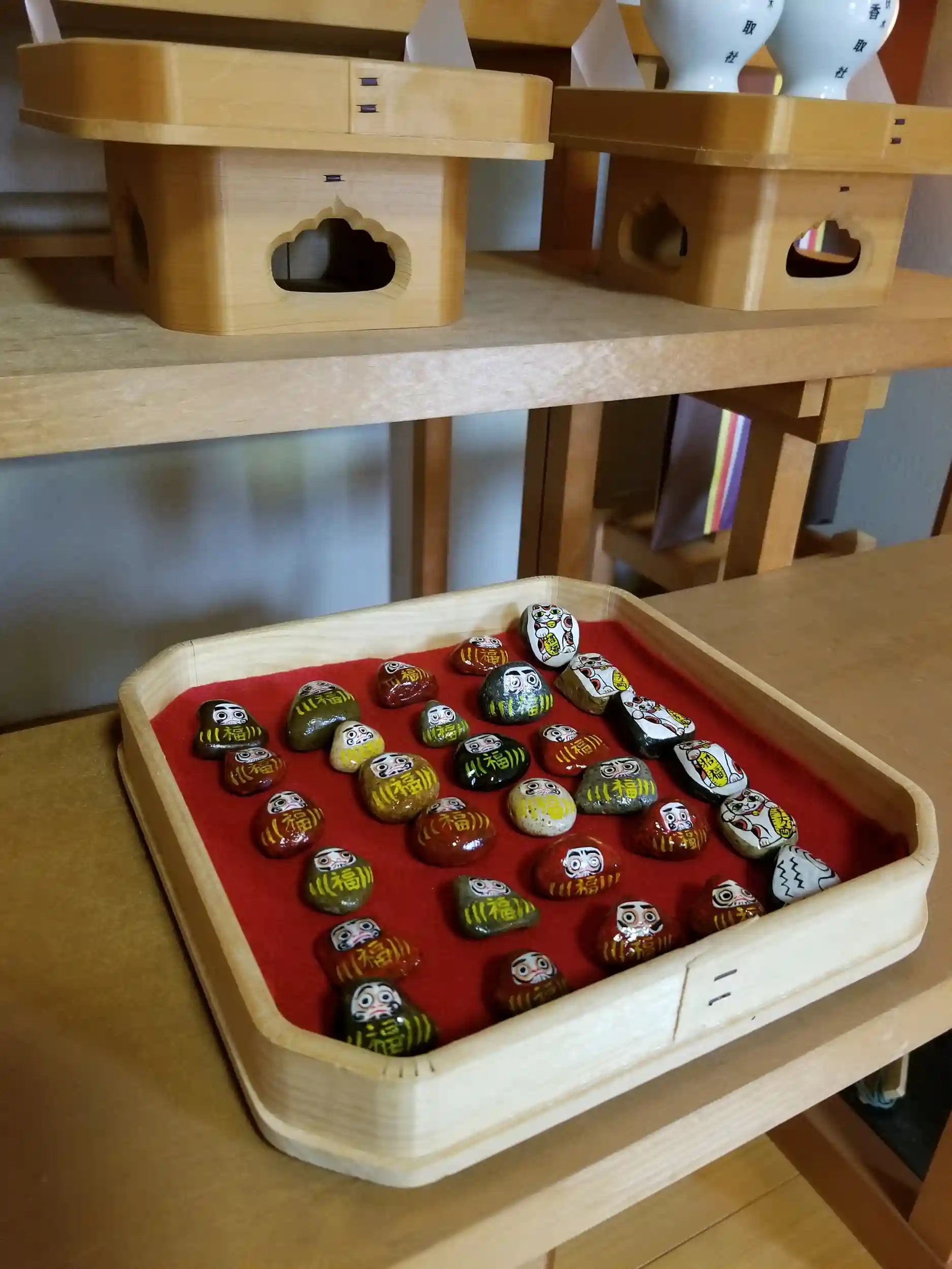 只今、神前でお祓いいたしましたので、お気に召すものをお探しいただき、厄除け開運のお守りとしたご自宅などにお飾りください🎵