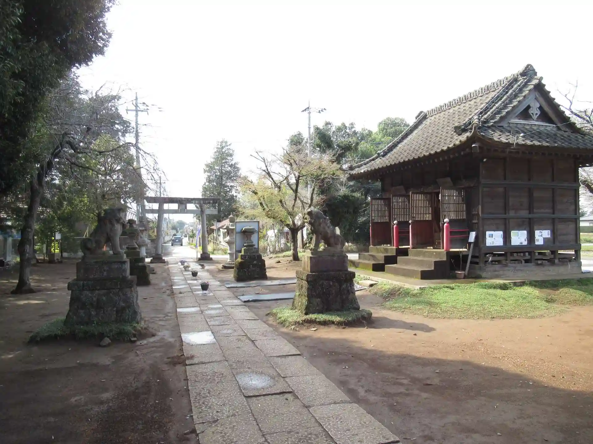 お勤めが終わって拝殿を辞する際、参道を振り返ると、パッとお日さまが差し掛けたんです!