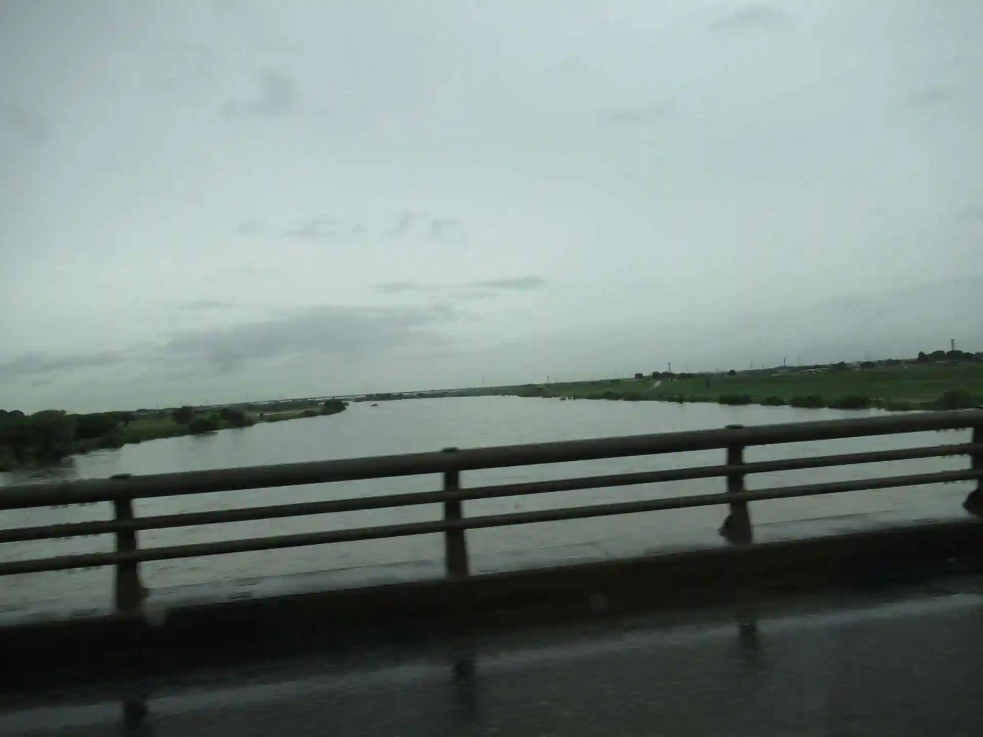利根川は、茶色の濁流。降雨の多さが、実感される。