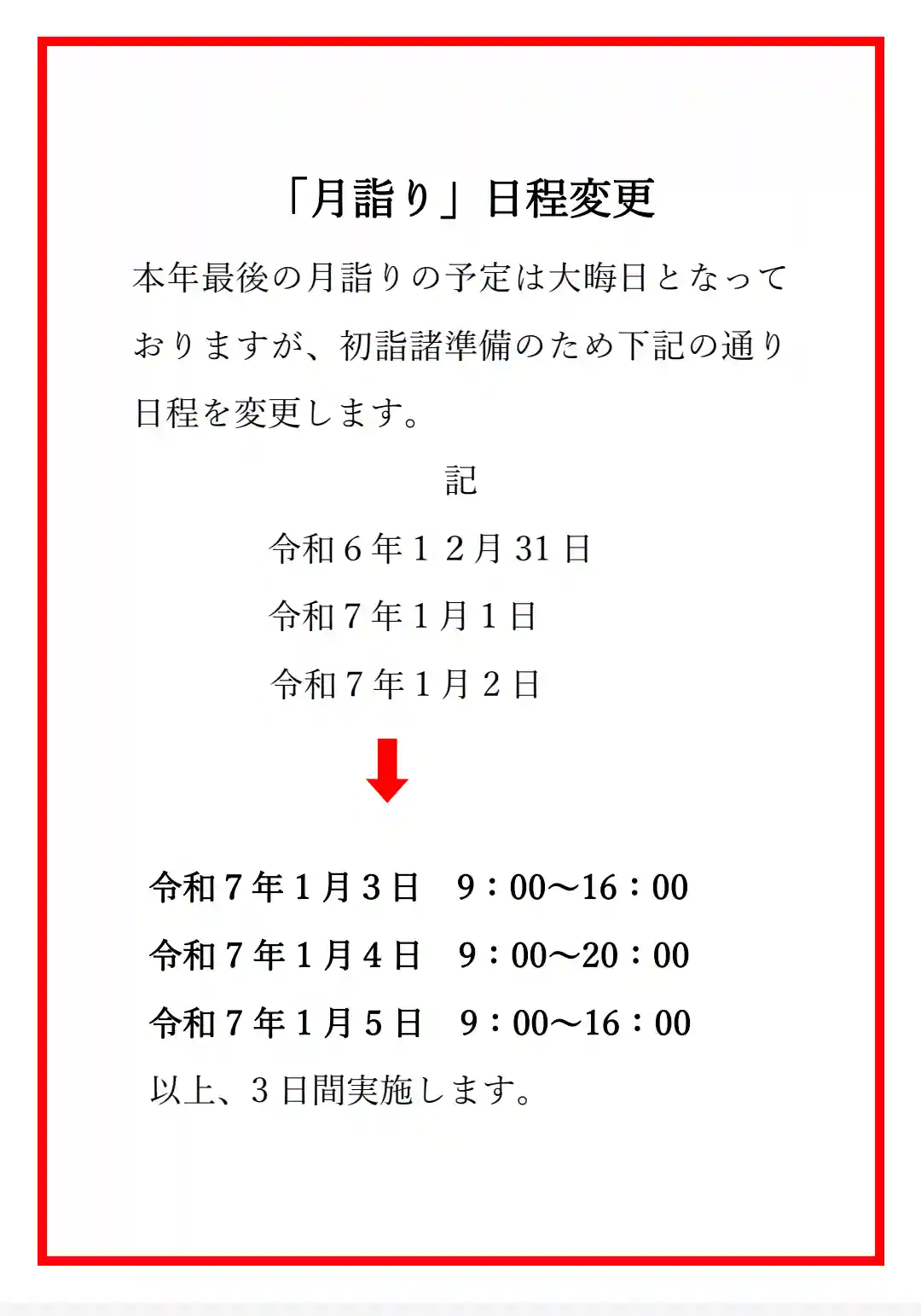 令和7年1月3日(金) 9:00〜16:00