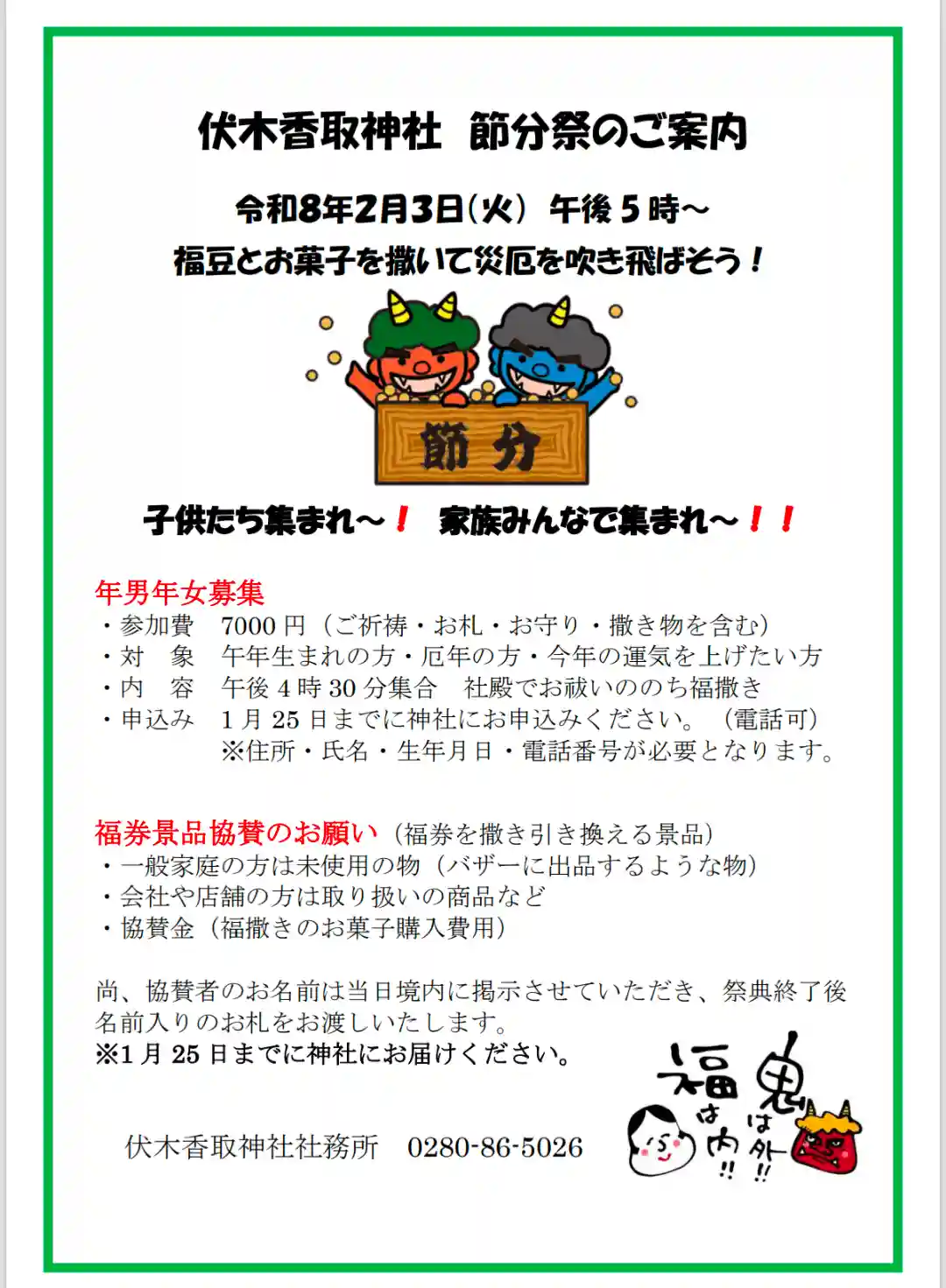 伏木香取神社 節分祭のご案内