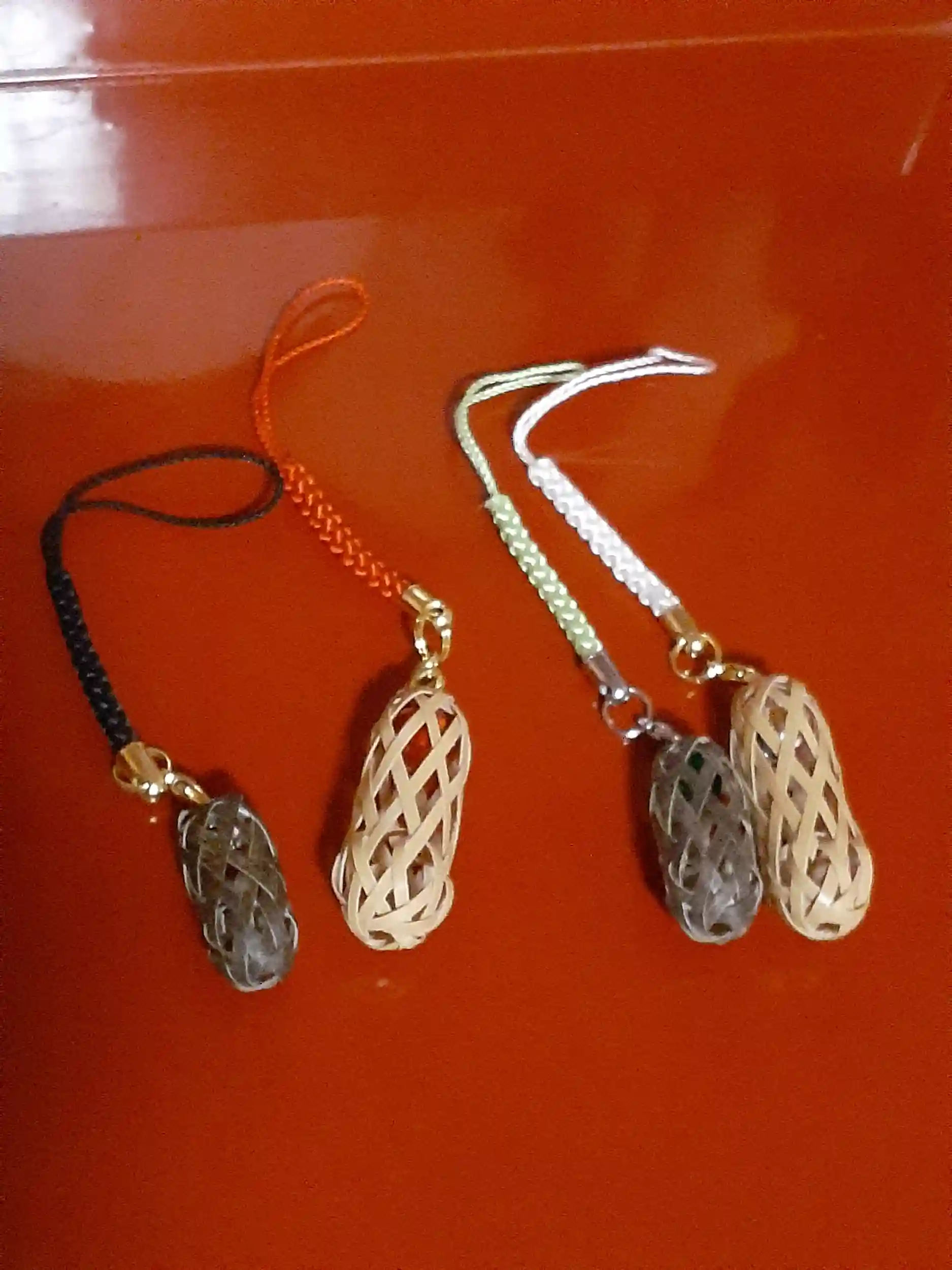 毎月お参りを頂いている方から、手作りの竹細工ストラップをいただきました。とても可愛い❤️