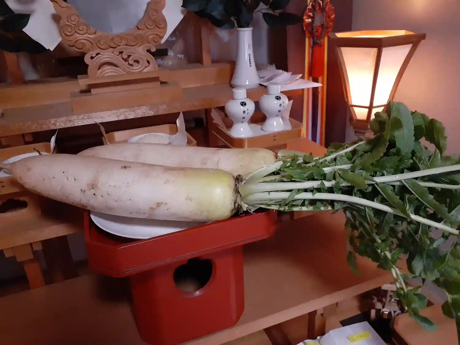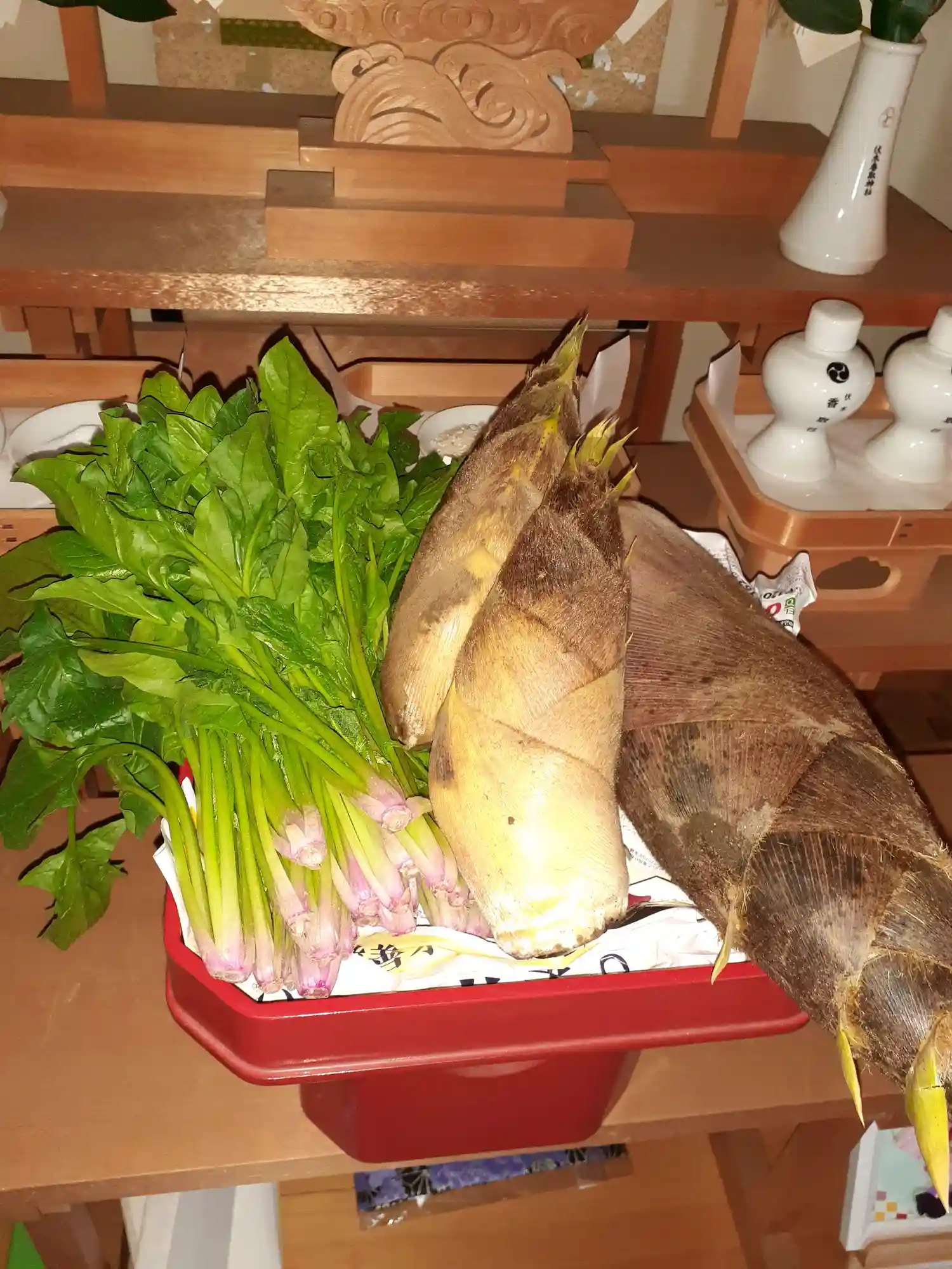 ご神前に神饌(お供えもの)を供して、氏子崇敬者ご参拝の方々の安寧を祈ります。
