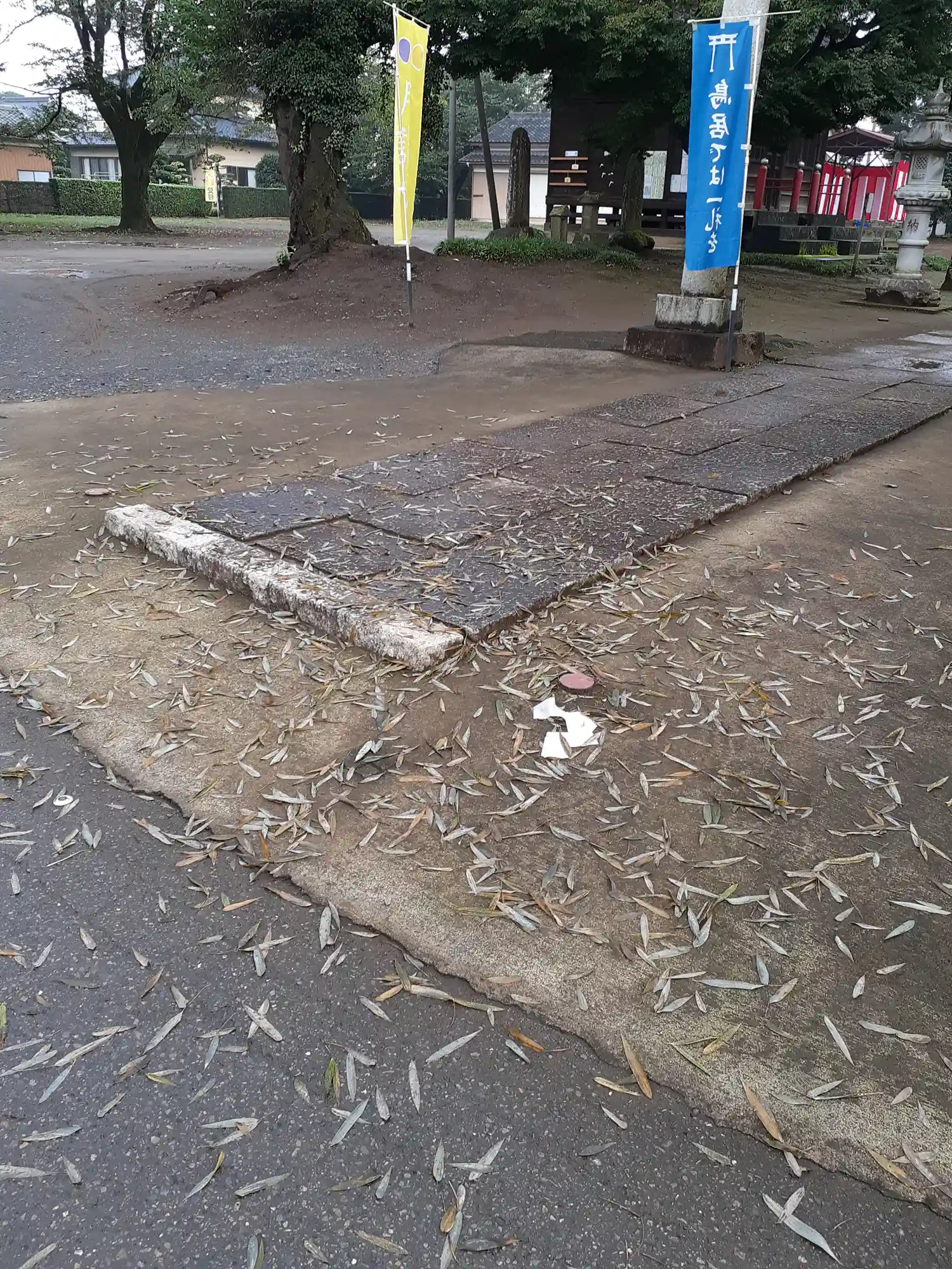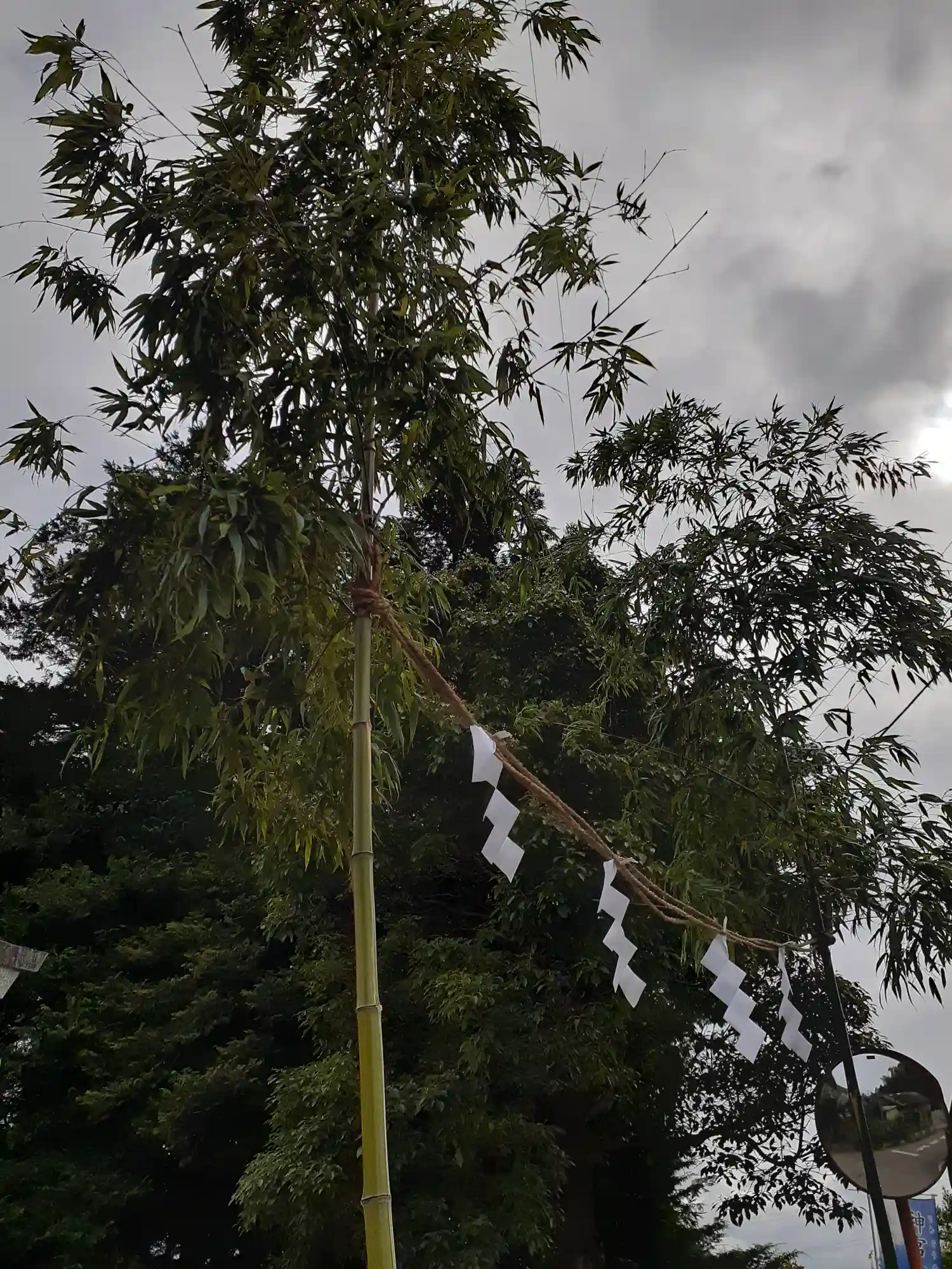 伏木香取神社の末社である八坂神社の天王祭開催を告げる斎竹が鳥居の前に立てられました❗ これを戸注…