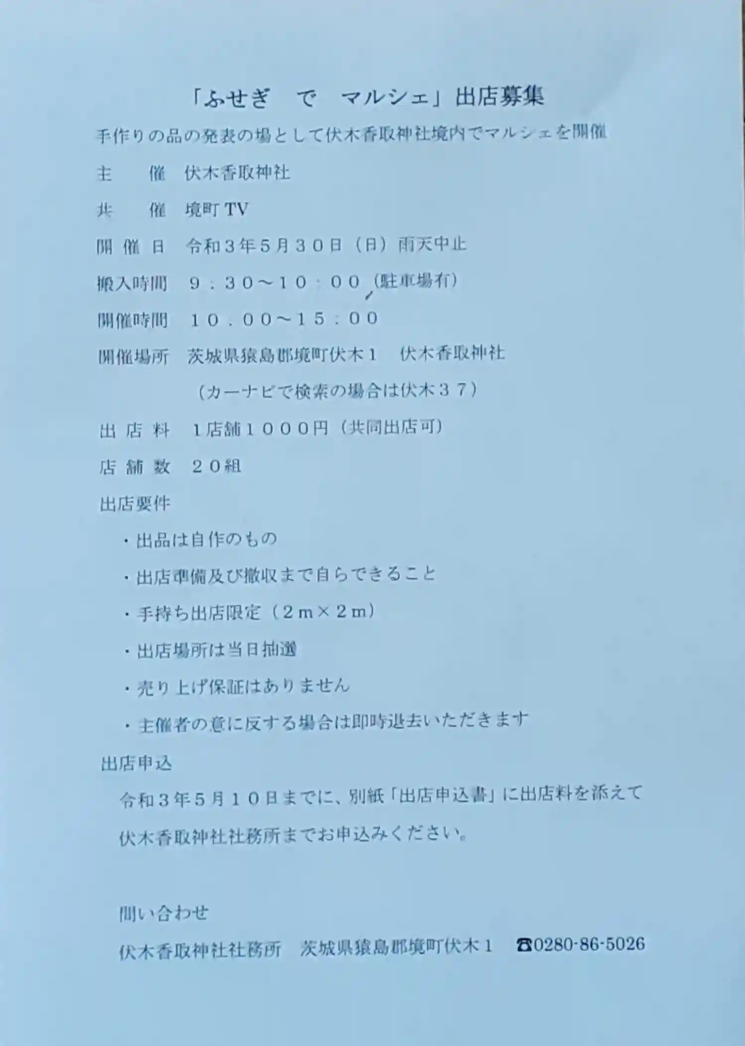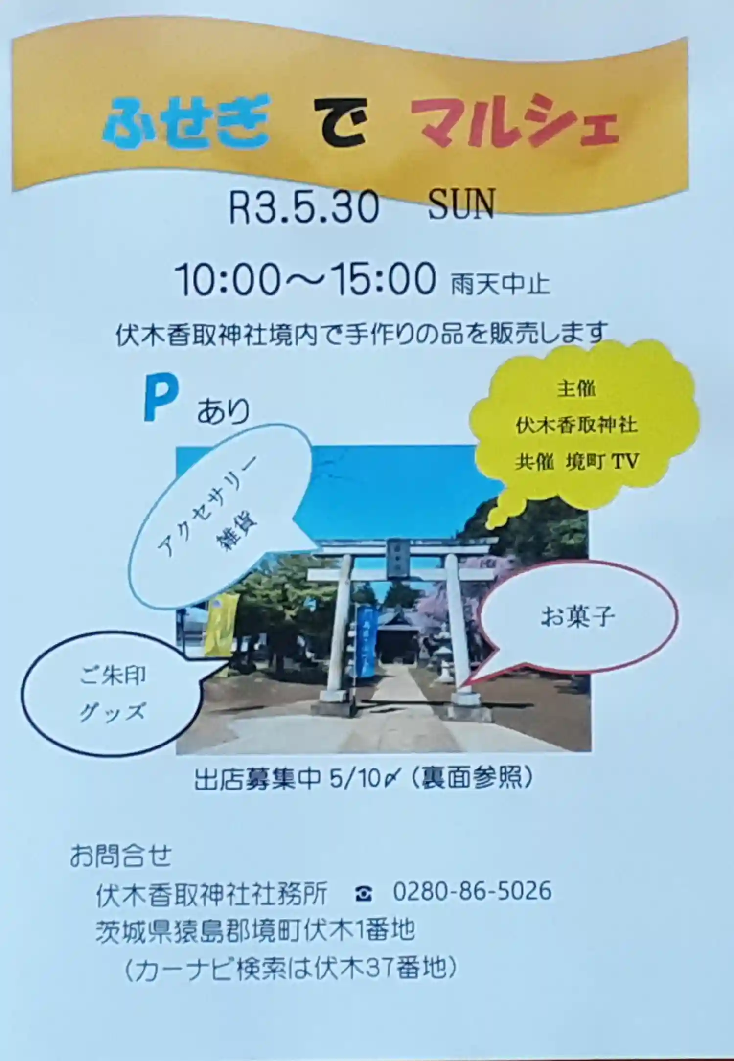 ふせぎ で マルシェ 5/30 10:00~15:00   雨天時はコラボ御朱印のみ実施 …