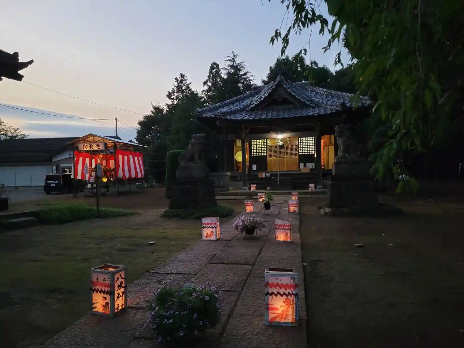 末社八坂神社天王祭の宮入前夜、境内に灯籠が飾られました。 風が心地好く静かな晩となりました。