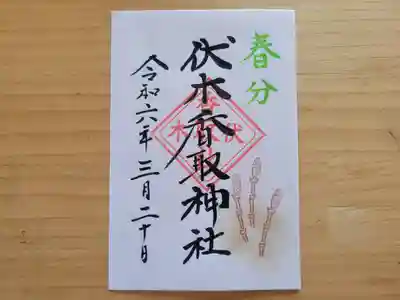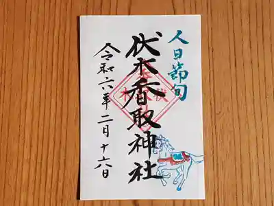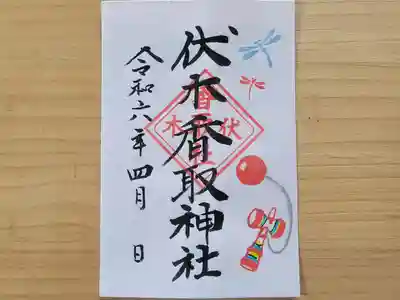 通常御朱印、下総國境町、伏木香取神社。ホトカミサポーターお気持ち特典のホトカミちゃんはんこ追加。ほっぺが赤くてかわいいです。