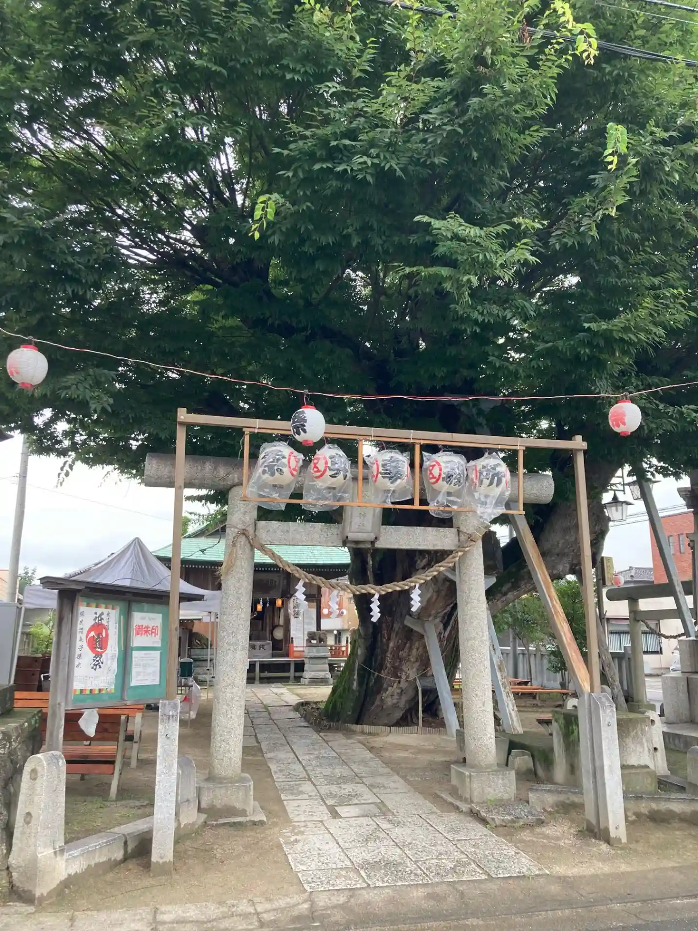 ケヤキの御神木が敷地に対して大きすぎる印象を受けました。