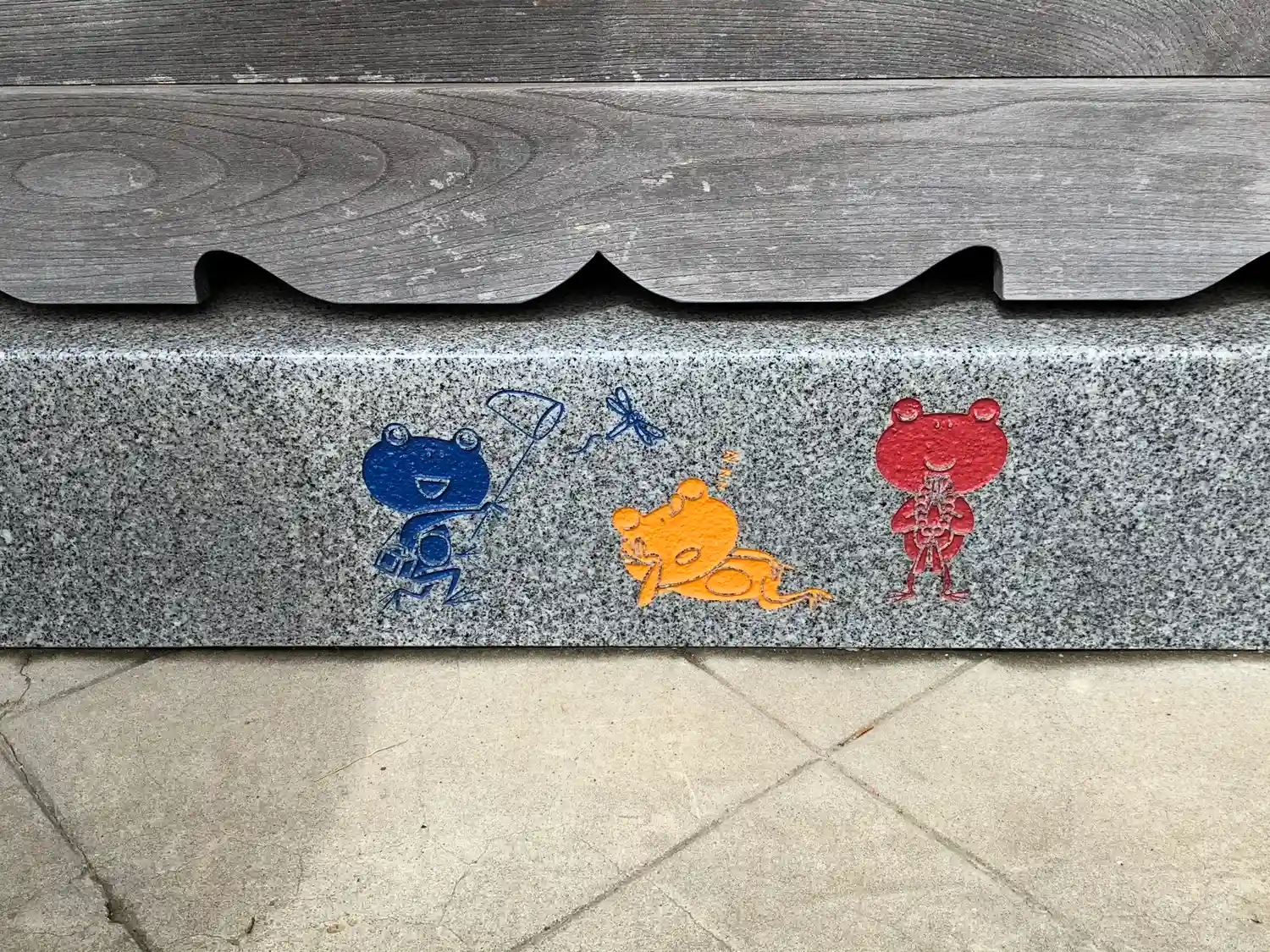 お賽銭箱の下に3色のカエル
