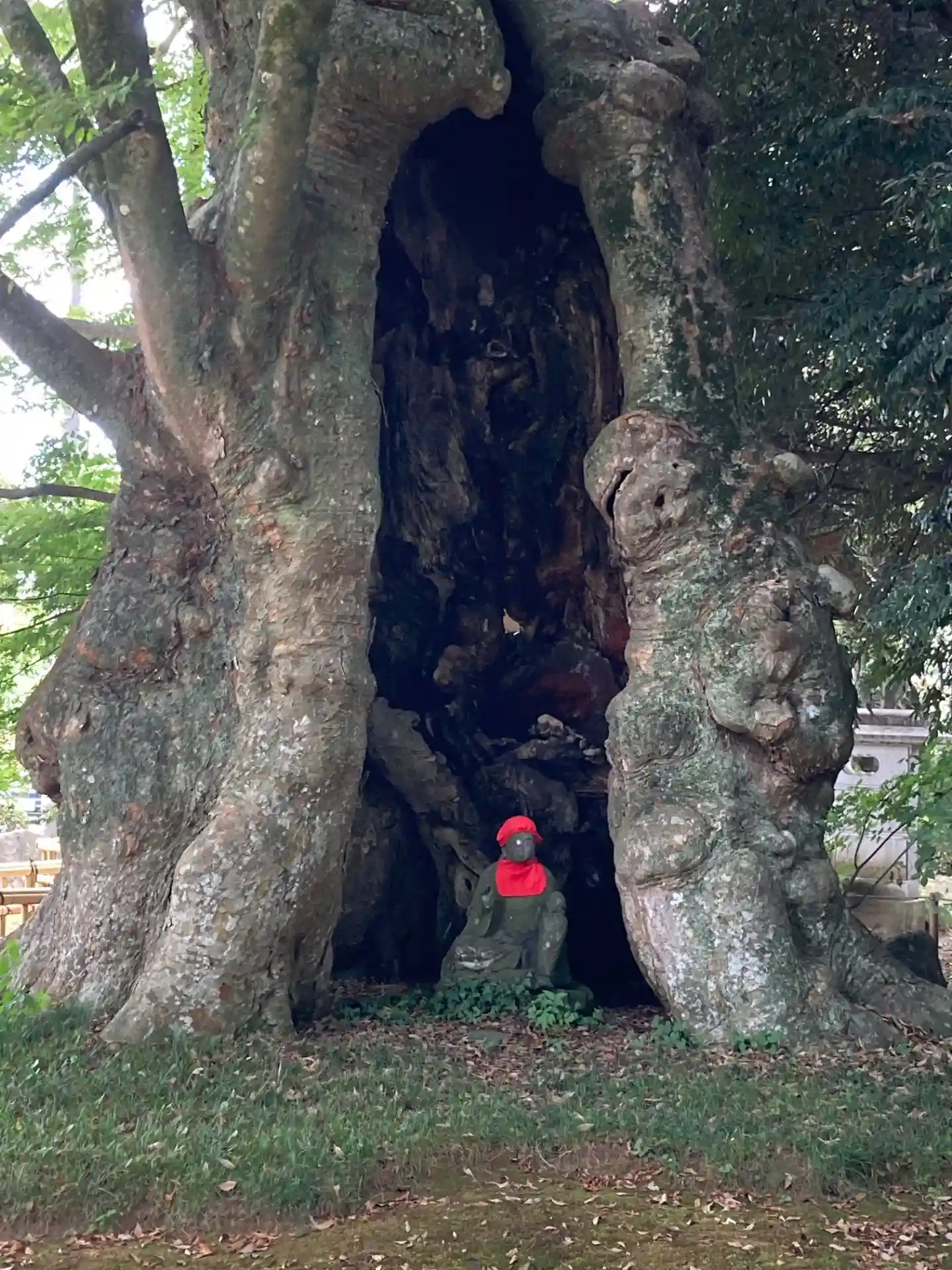 このお寺に来た目的は、やはり県指定天然記念物の地蔵ケヤキ。樹齢1600年とされる大木です。根本に高さ約7mに及ぶほら穴があり、その中に安産や子育てにご利益があるとされる「子育て地蔵菩薩」が安置されています。ほら穴が出来た時期は不明ですが、高源寺が火災にあった時に焼けて出来たとの事。本当に樹木の生命力は凄いと、唸らされる様な絵ですね。