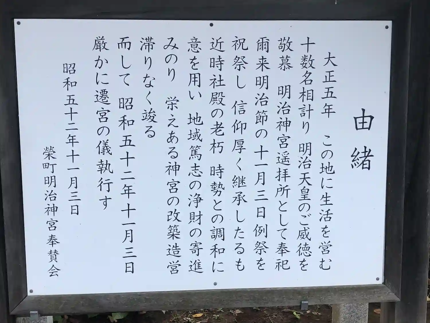 御由緒の説明板を見ると大正5年にできたとあります。