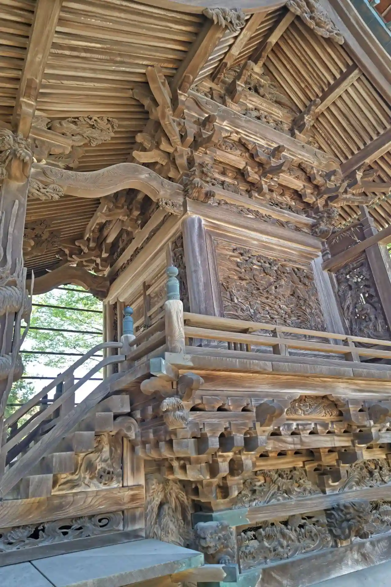 明治36年(1903)に再建されたもので、一間社流造、建物全体に精巧な彫刻が施されている。