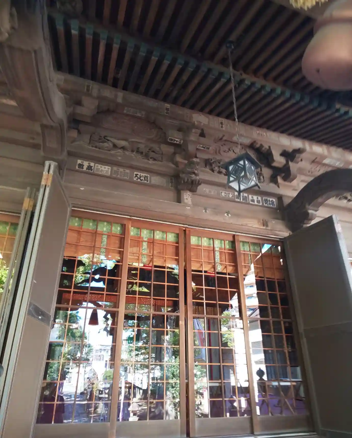 本殿の壁面には透かし彫り…
