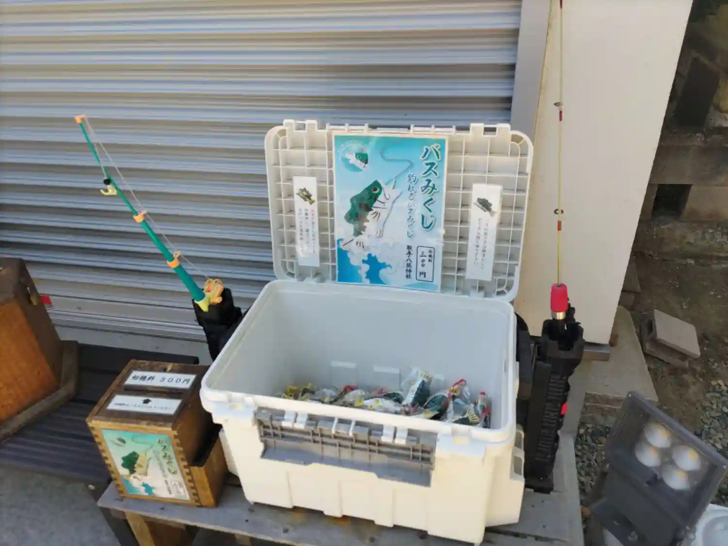 ブラックバスがくわえているおさかながおみくじ本体です。