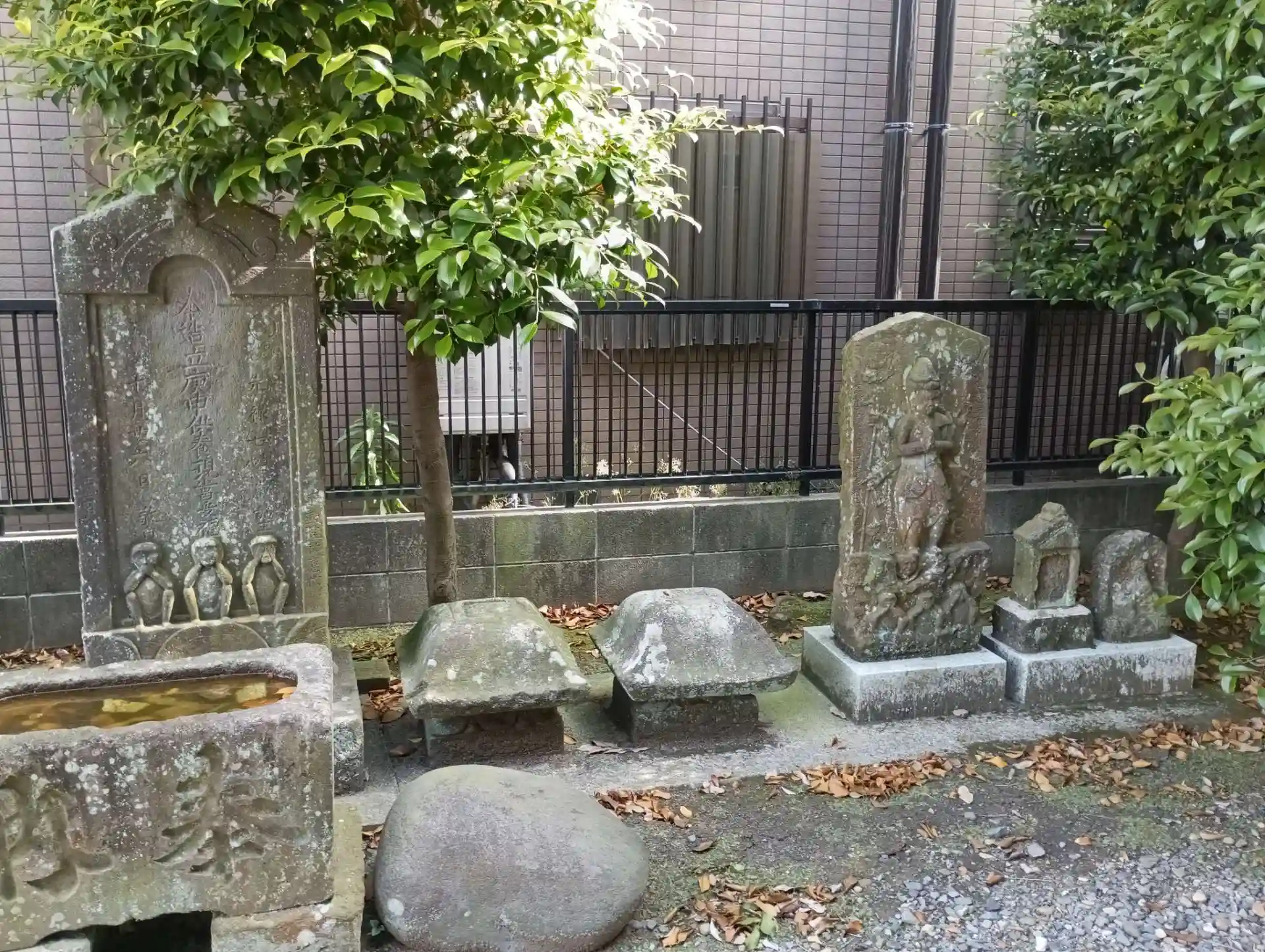 坂の上の交差点右側に住宅と幼稚園に挟まれて鎮座されています。