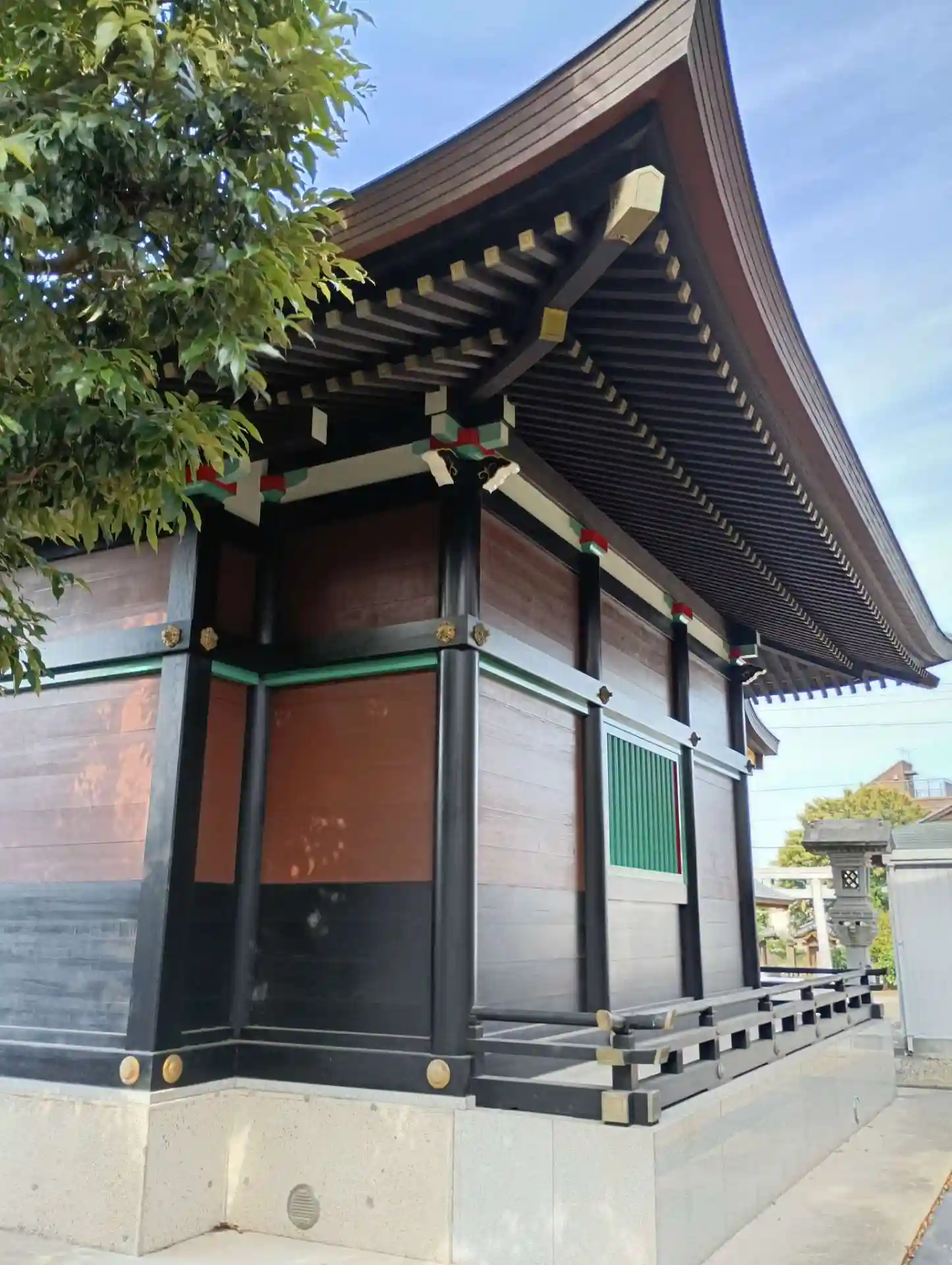 敷地はそれほど広くないのですが、黒と緑を基調とした立派な社殿です。
