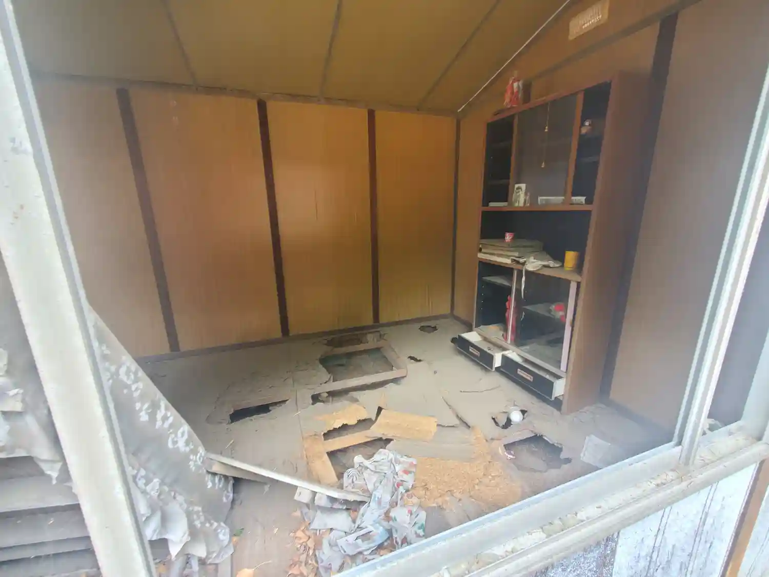 廃墟プレハブの横に小さいお堂
