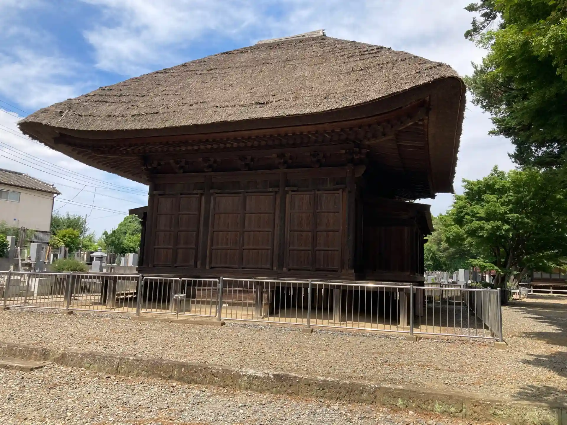 午前中でしたが既に30度近い暑さ。私の他には参拝客はおらず、本堂にお参りした後ゆっくり三仏堂を眺める事ができました。茅葺きの屋根や三方に裳階が張り出した珍しい造り等、解体修理を経てよくぞ創建当初(16世紀前半とされる)の姿今に伝えてくれたものだと感心。