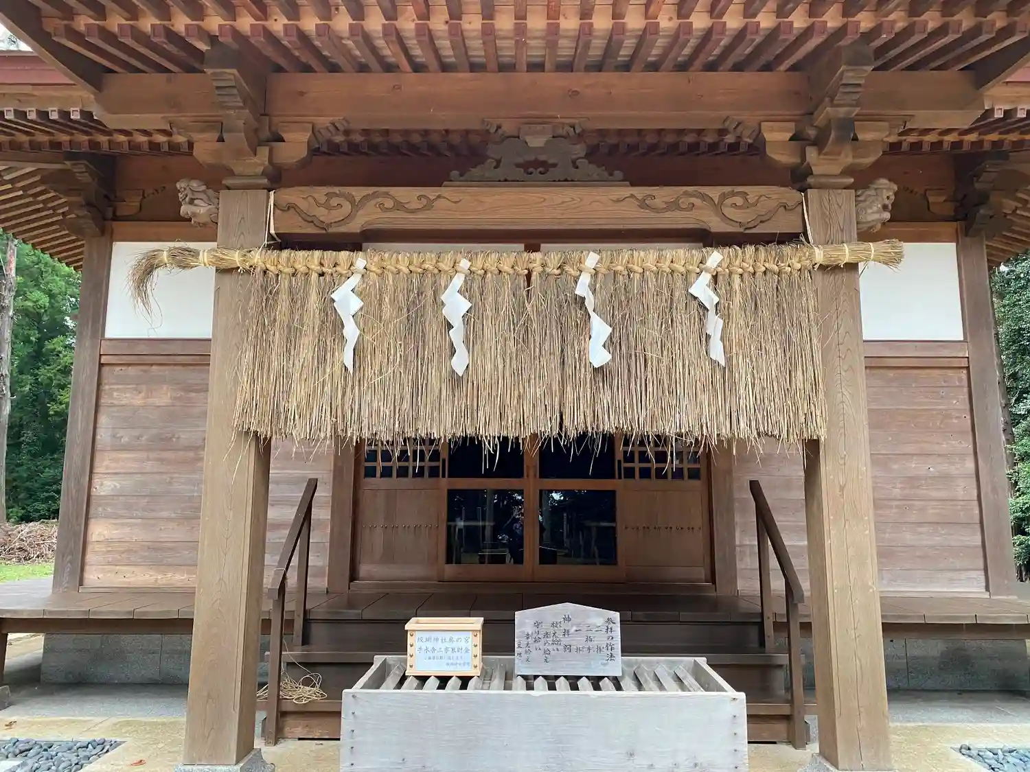 <拝殿>正面。紙垂が付いた藁の暖簾が特徴的。