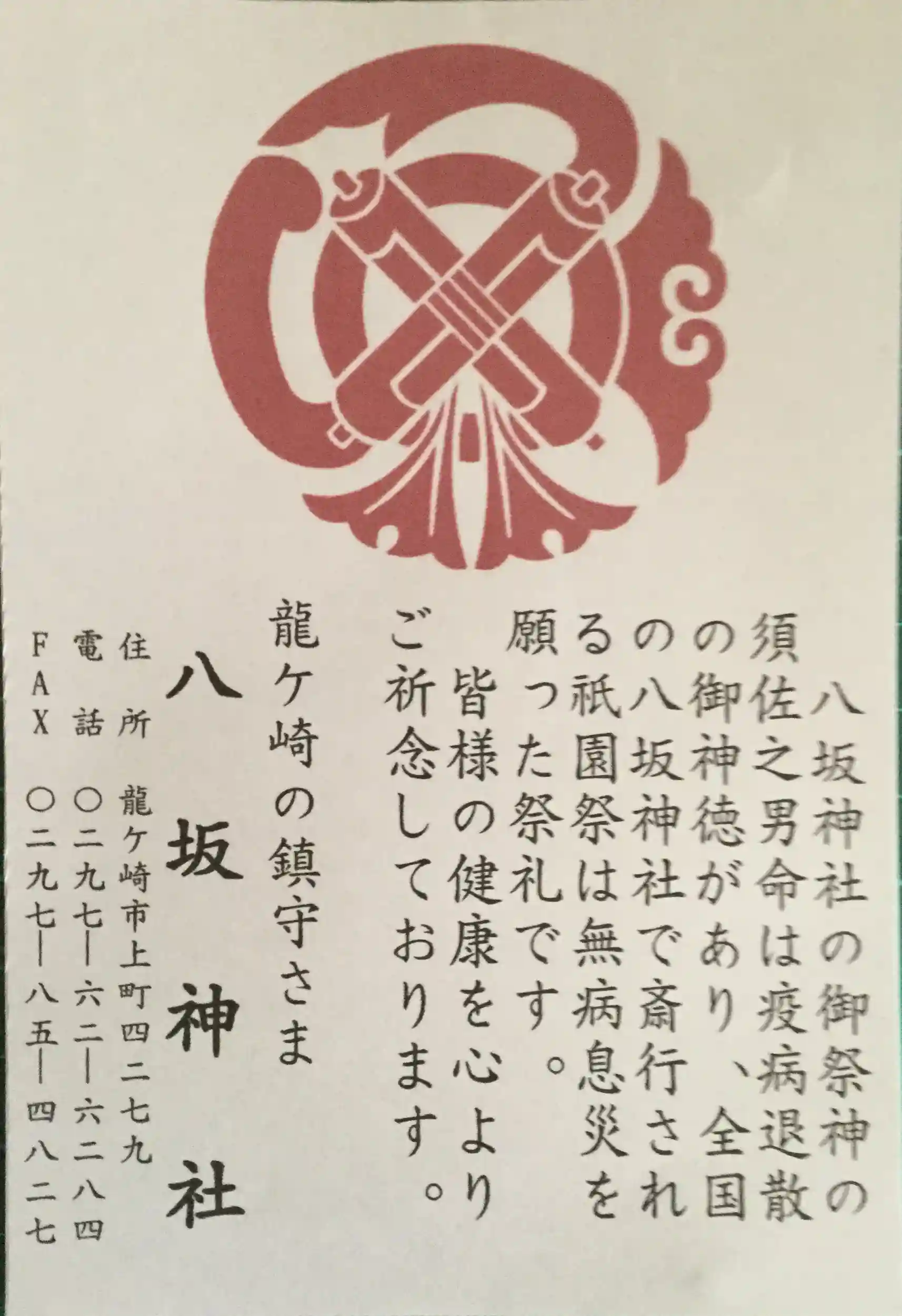 楽しみ方龍ケ崎八坂神社のお参りの記録(1回目)