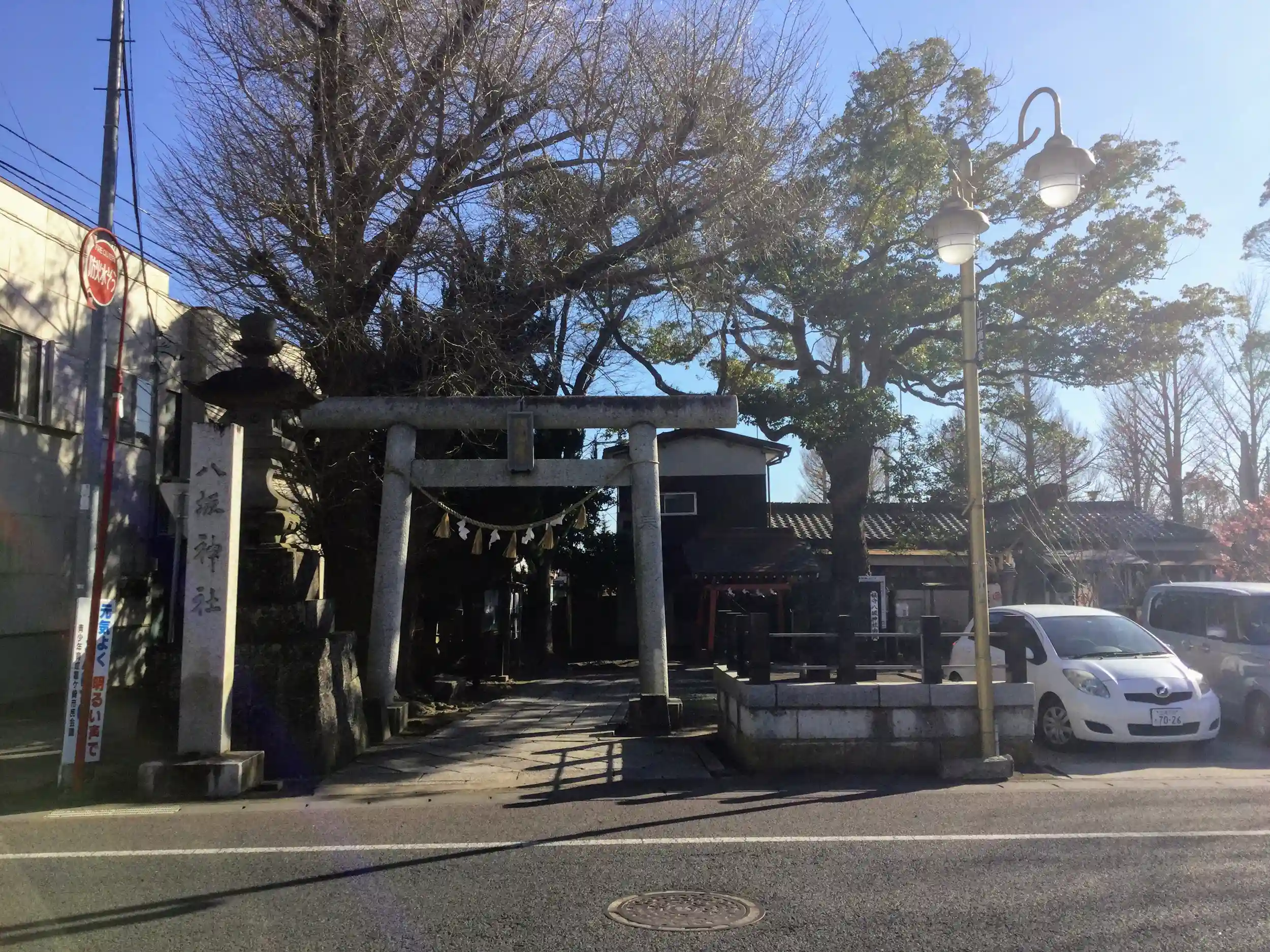 関東鉄道竜ヶ崎線竜ヶ崎駅から昔は栄えていただろうなという商店街を7、8分歩いた所にある街の中の神社です。
