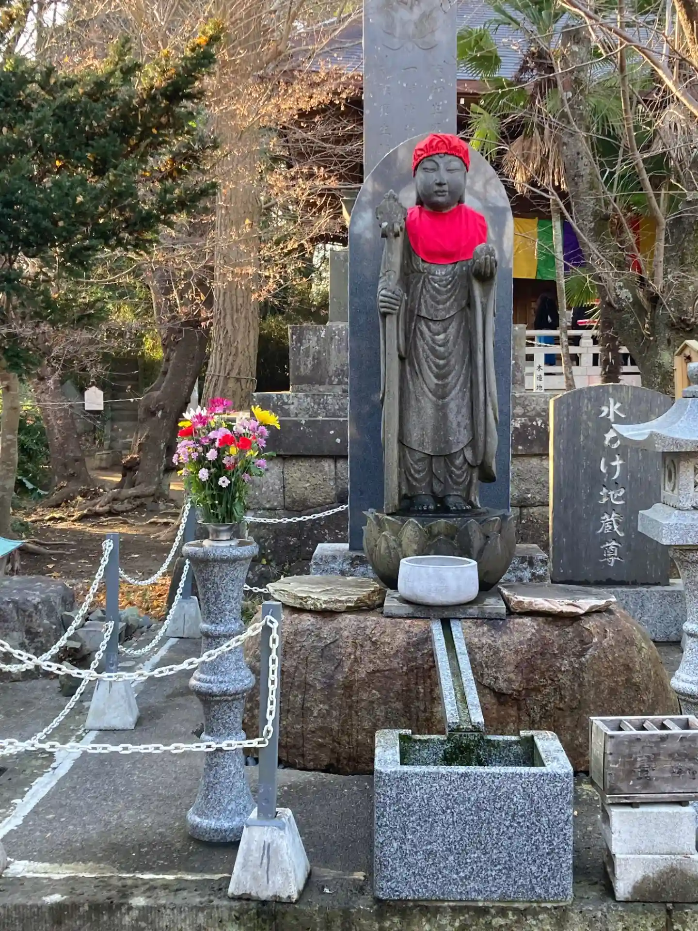 本堂の手前に置かれた摩尼車。実は今まで反対方向に回しながらお祈りししていた事を指摘されてしまいました(汗)。