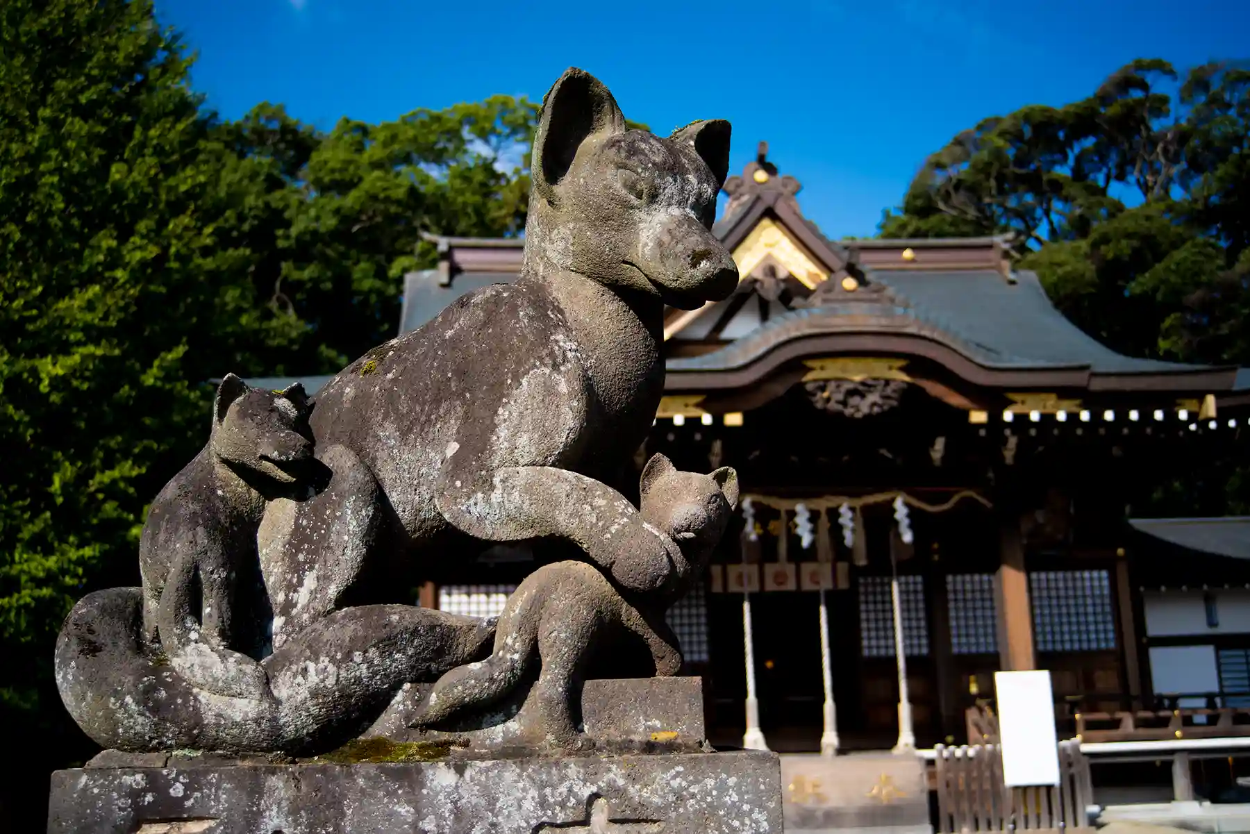 キツネの恩返しの民話が神社に伝わっています。狩人に狙われた白狐を助けてあげると、綺麗な女になってあらわれます。女はとても働き者だったので農夫は気に入り結婚をしました。3人の子供を儲け幸せに暮らしていたある日、子供を昼寝させている時に自分もうっかりうとうとしてしまい、子供に尻尾を見られてしまいました。尻尾を見られた女は姿を消しますが、子供たちは成長し立身出世したそうです。そのため、立身出世の御神徳もあるのだそう。