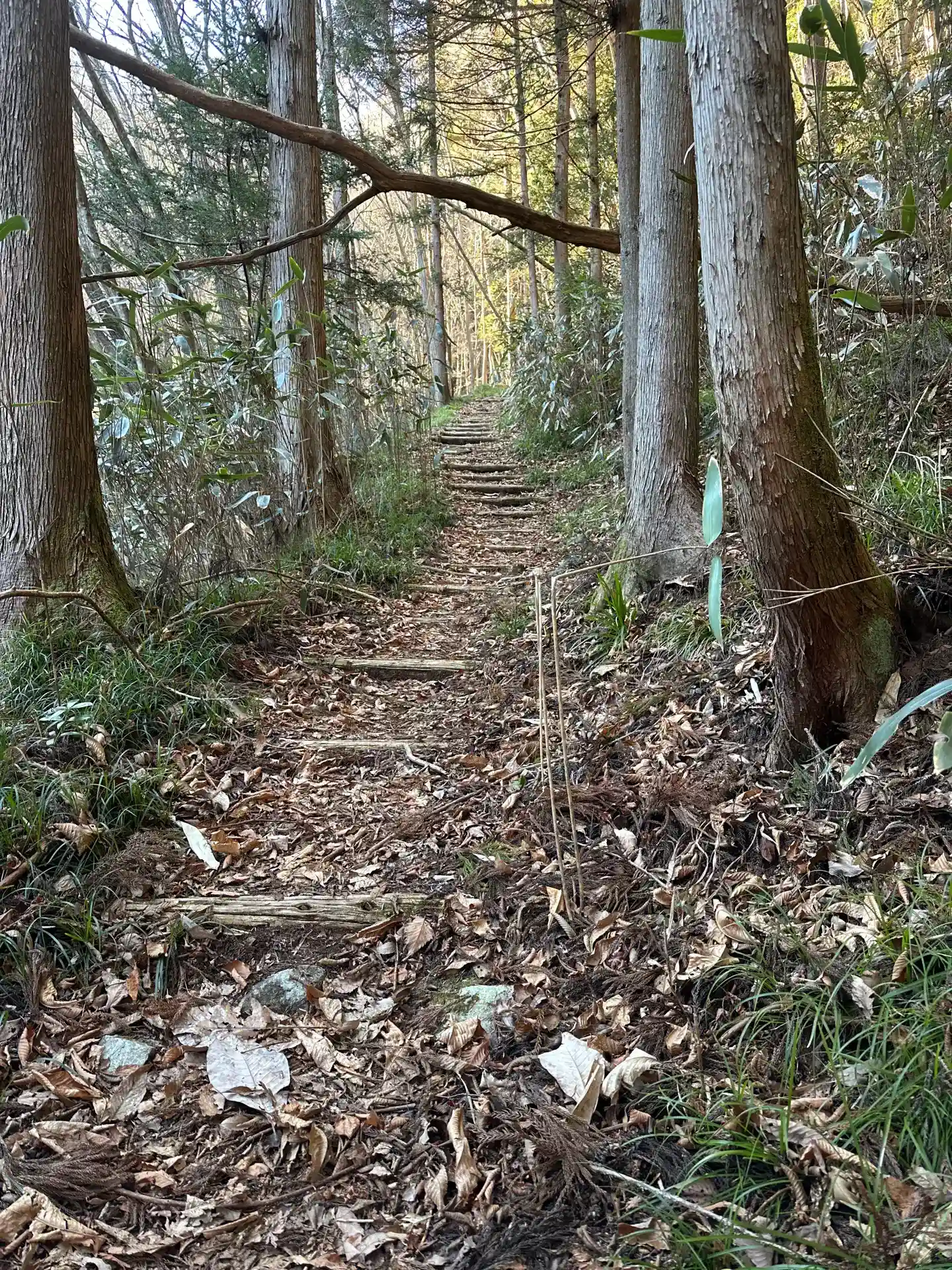 拝殿の裏に長い階段があり、