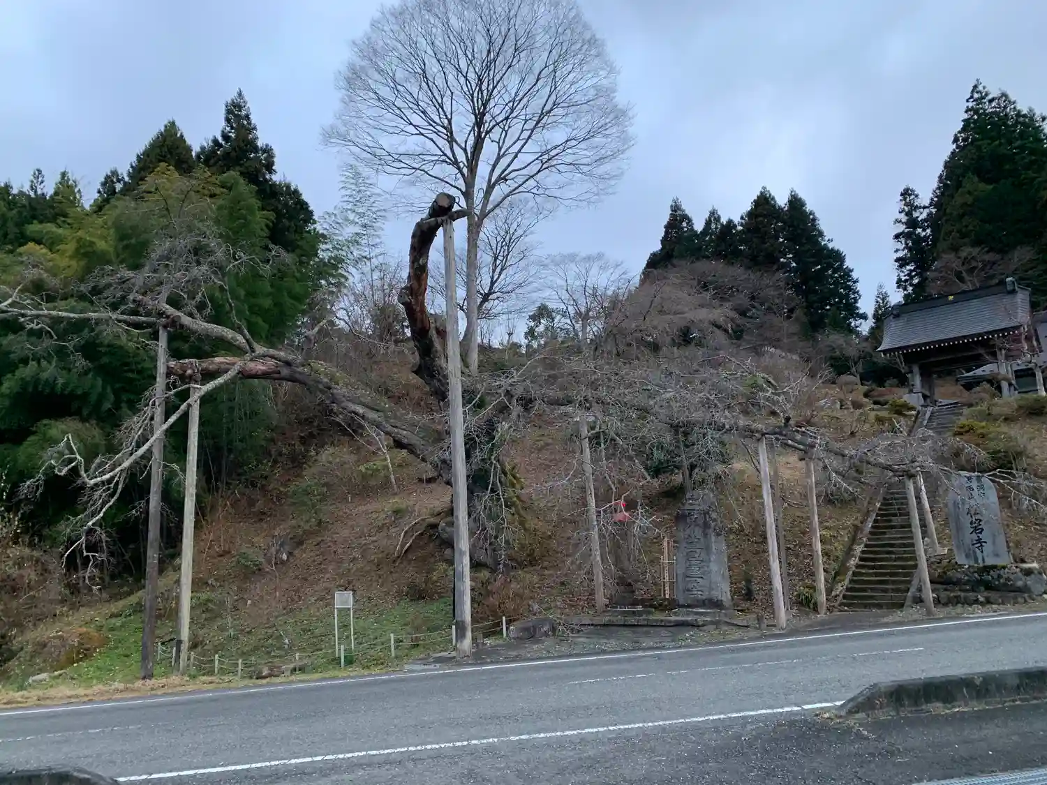 目を見張る様な樹齢350年とも言われる山桜の大木が道路脇にあります。