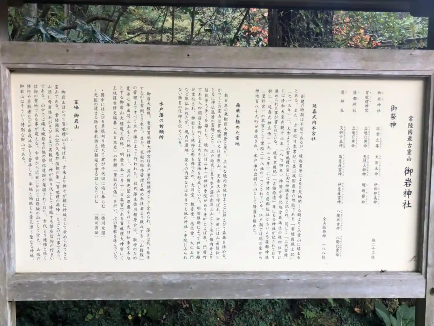 古代からの山岳信仰、御岩山全体で百八十八柱の御祭神。